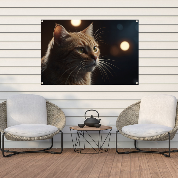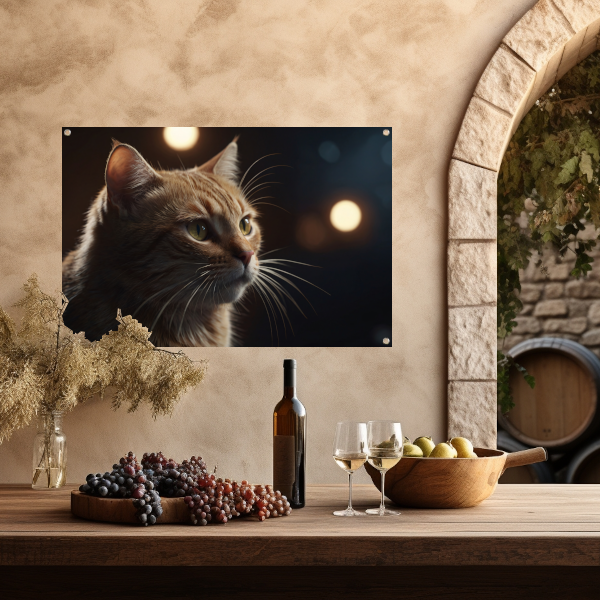 De stille majesteit van een kat bij avondlicht komt tot leven op deze prachtige tuinposter. Met zijn elegante houding en mysterieuze blik, straalt deze kat een gevoel van rust en sereniteit uit. De poster is verkrijgbaar in verschillende formaten, zodat je hem perfect kunt afstemmen op jouw tuin of balkon.