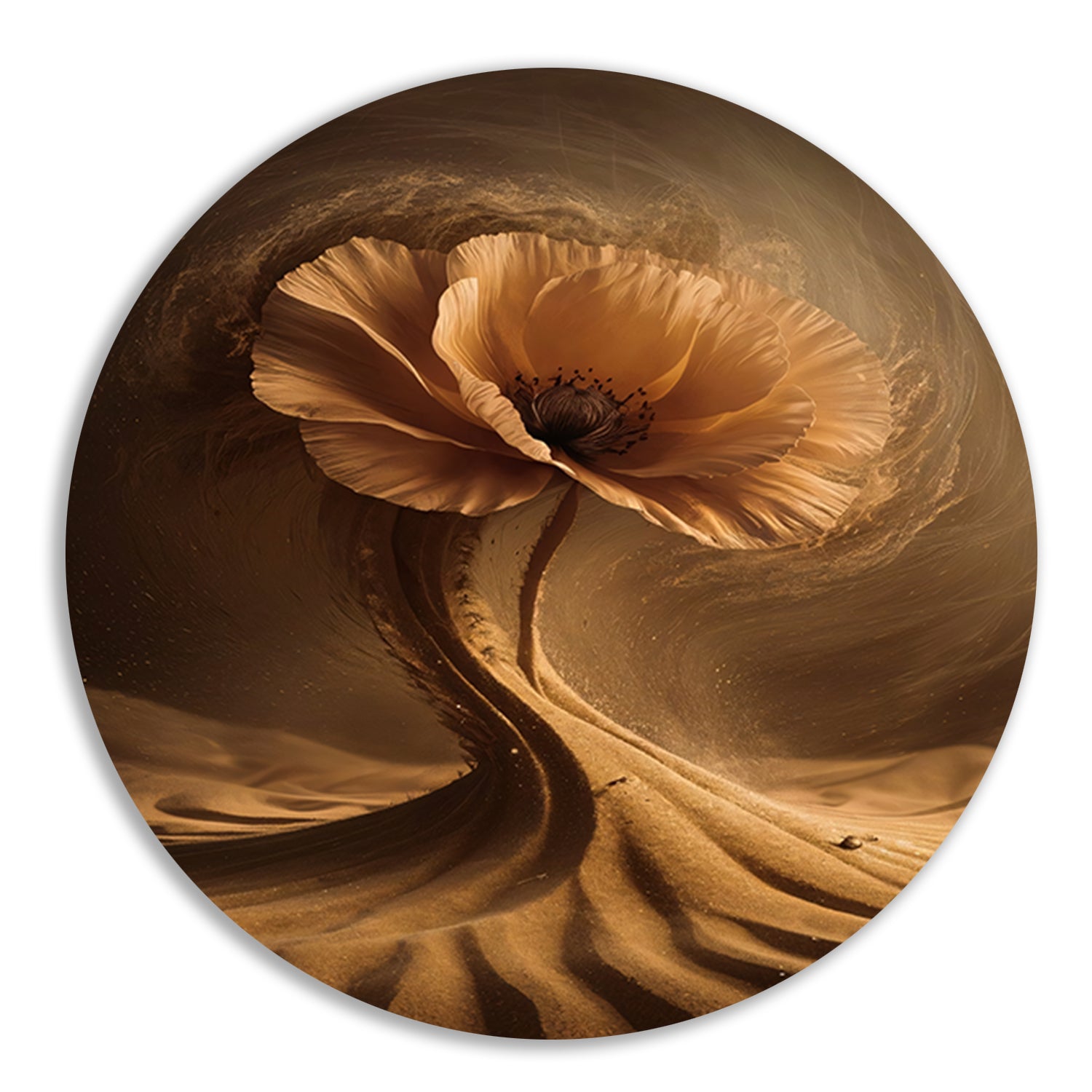 De weerstand van een bloem in de zandstorm aluminium muurcirkel