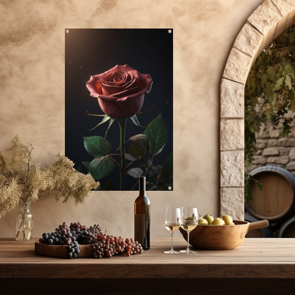 Dieprode Roos met Fluweelachtige Bladeren tuinposter