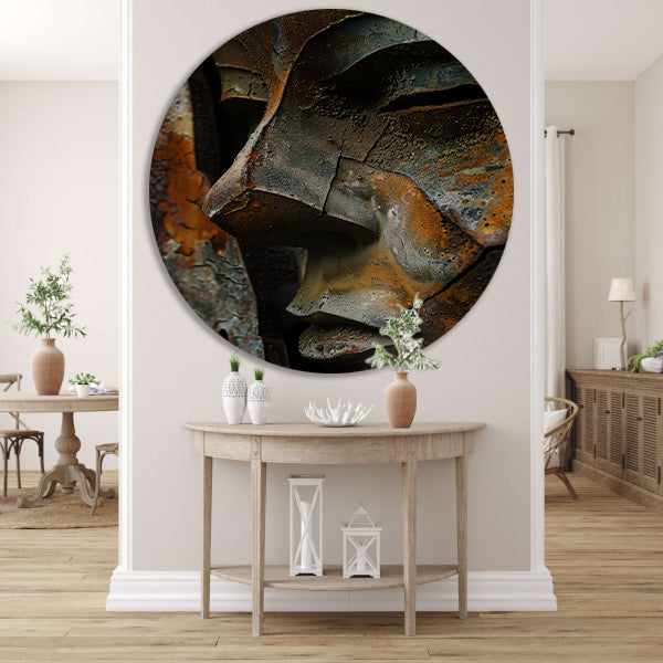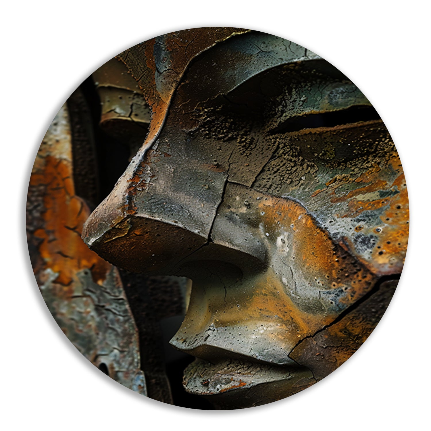 Digitaal portret van verweerd gezicht aluminium muurcirkel