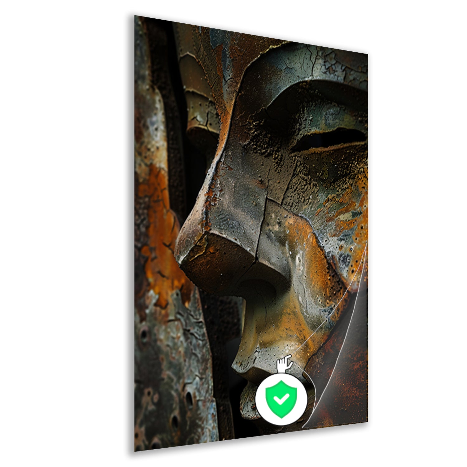 Digitaal portret van verweerd gezicht poster