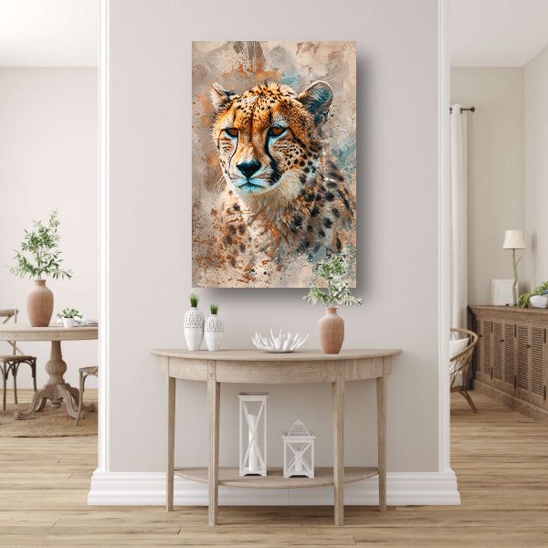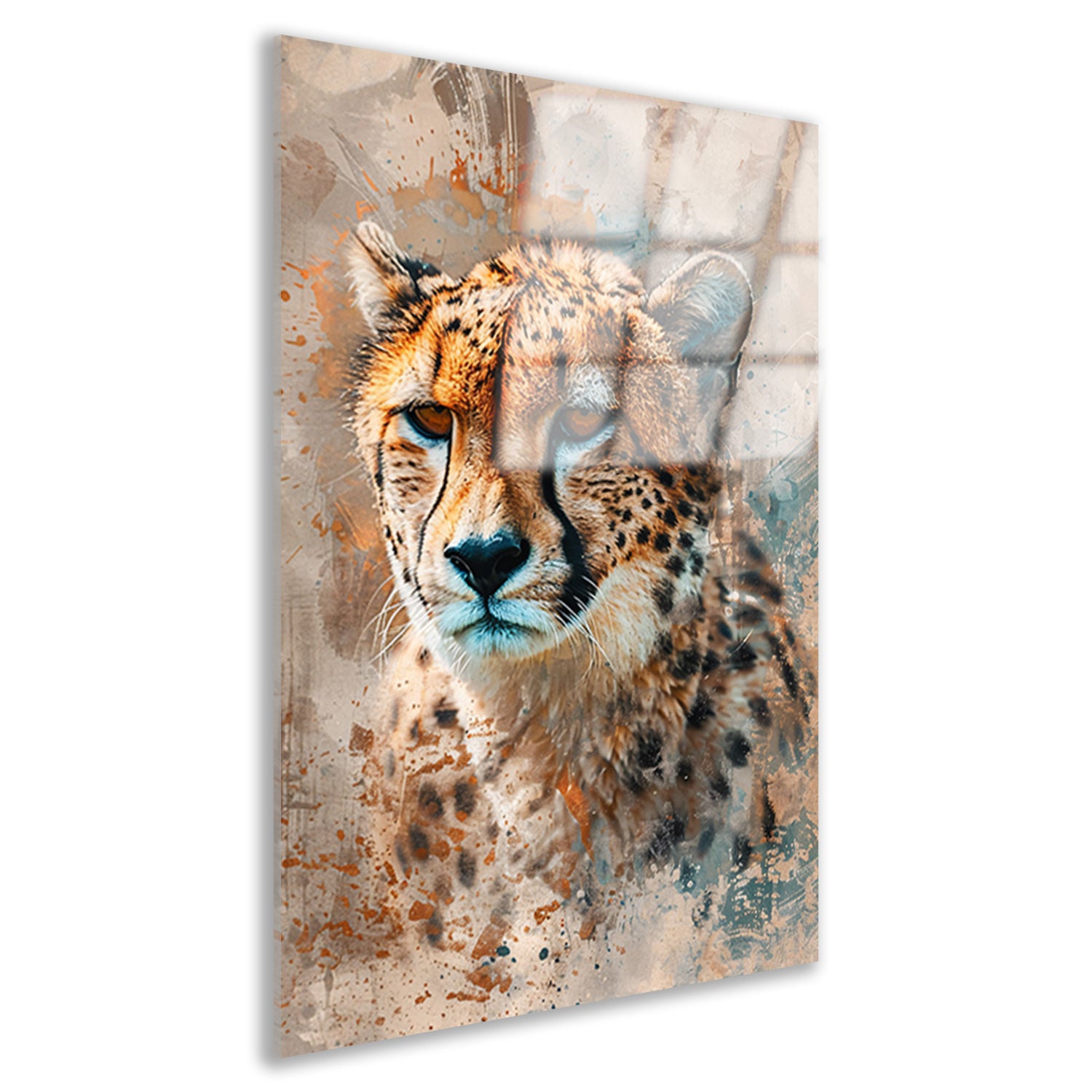 Digitale kunst van cheetah met abstracte achtergrond acrylglas
