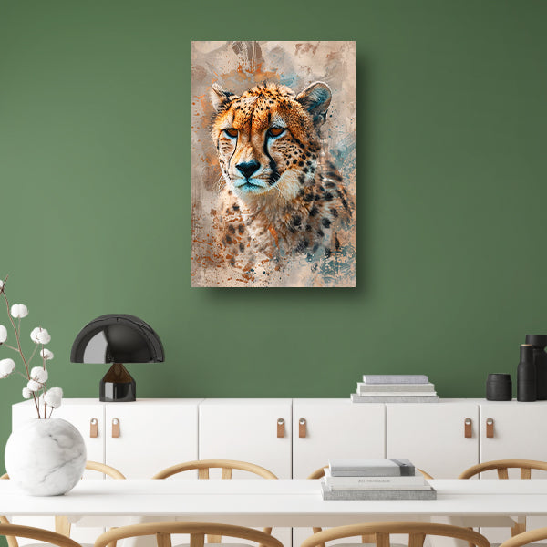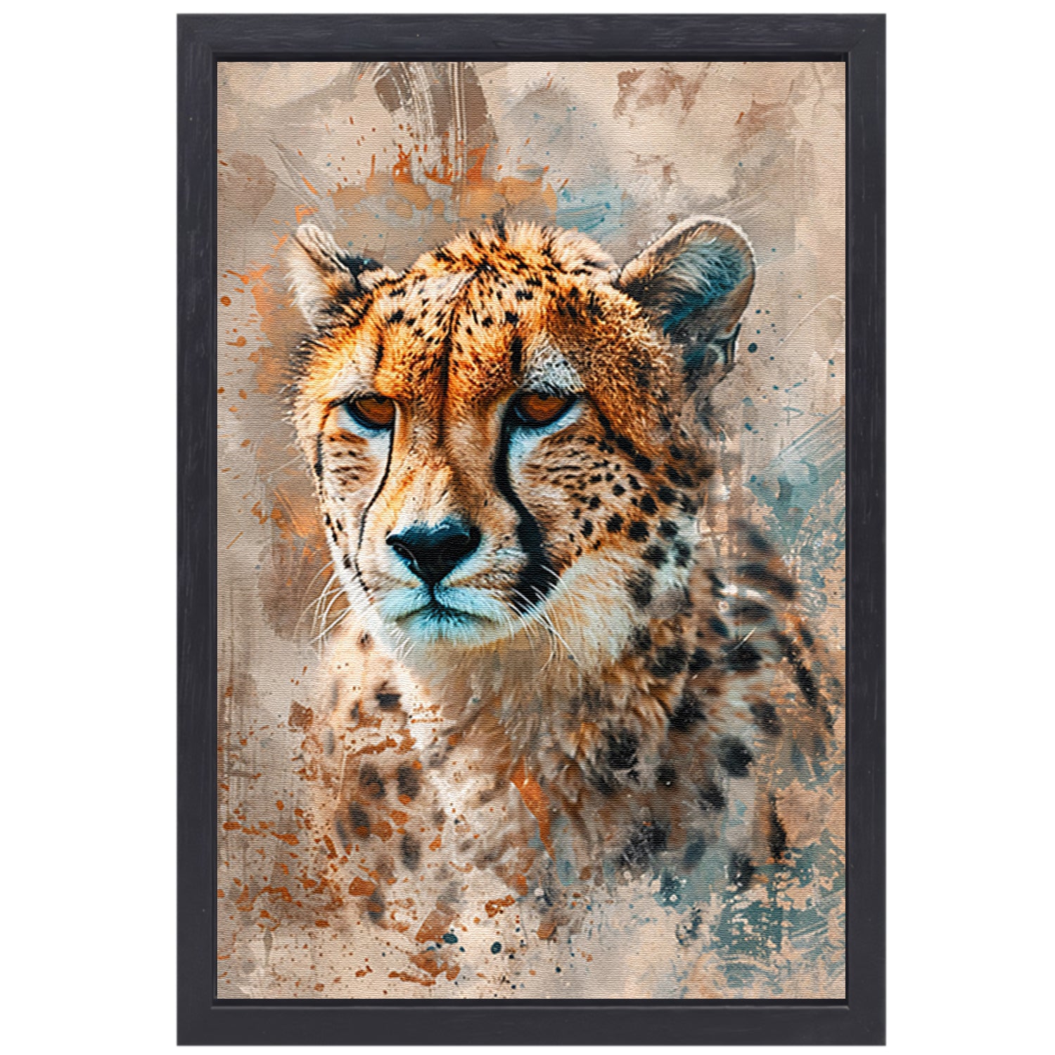 Digitale kunst van cheetah met abstracte achtergrond canvas met baklijst
