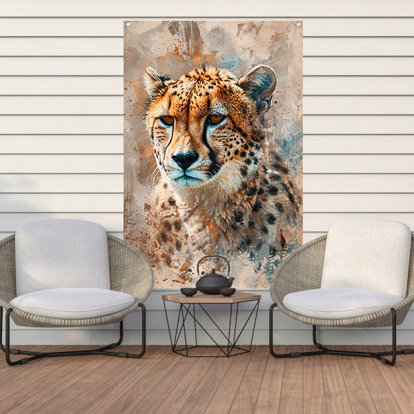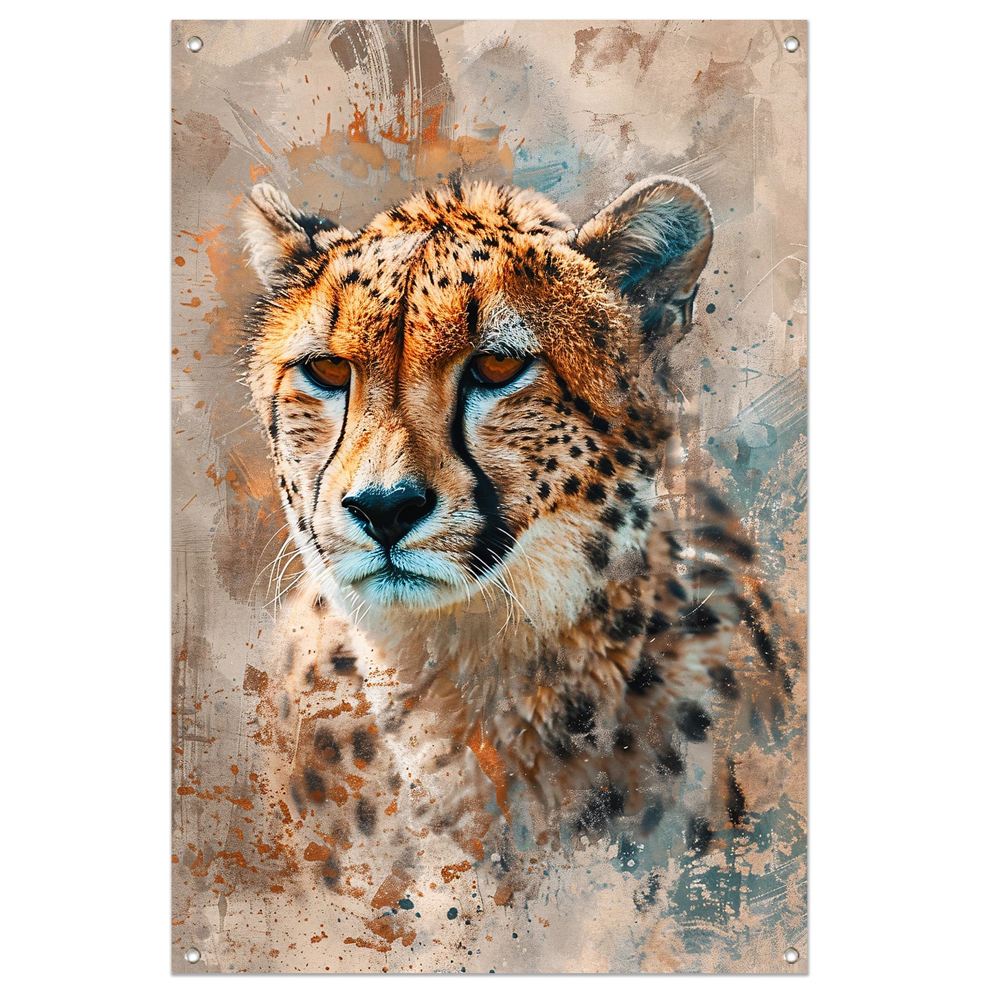 Digitale kunst van cheetah met abstracte achtergrond tuinposter