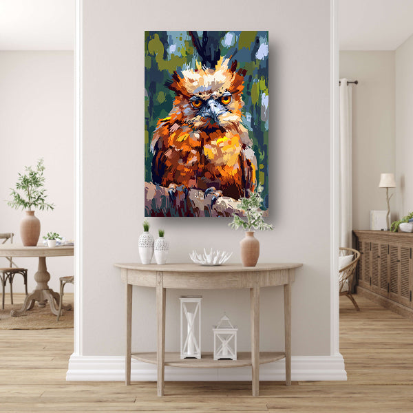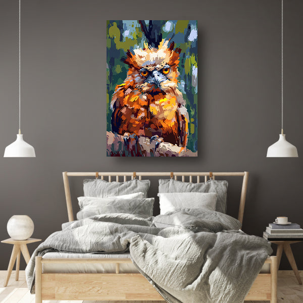 Digitale kunst van kleurrijke vogel in natuur canvas met baklijst