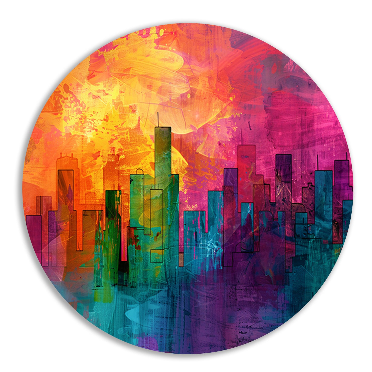 Digitale kunstwerk van kleurrijke skyline aluminium muurcirkel