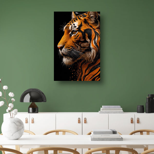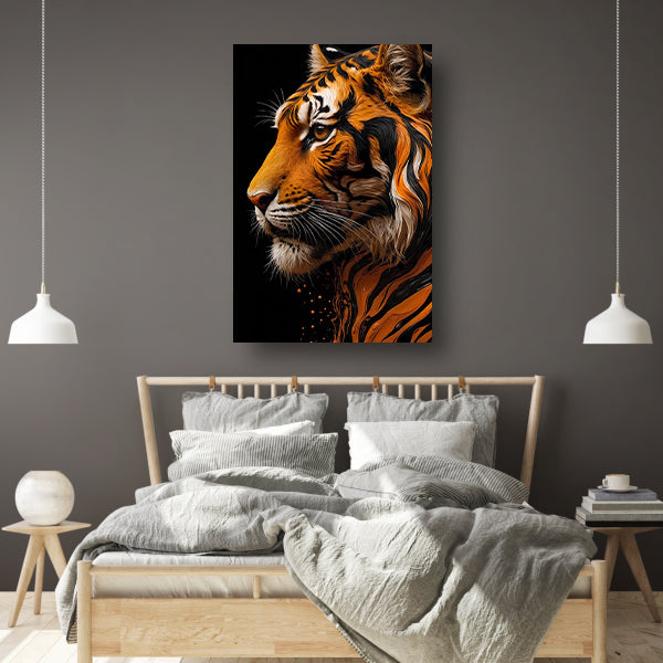 Digitale Oranje-Bruine Tijgerkop Kunst canvas met baklijst