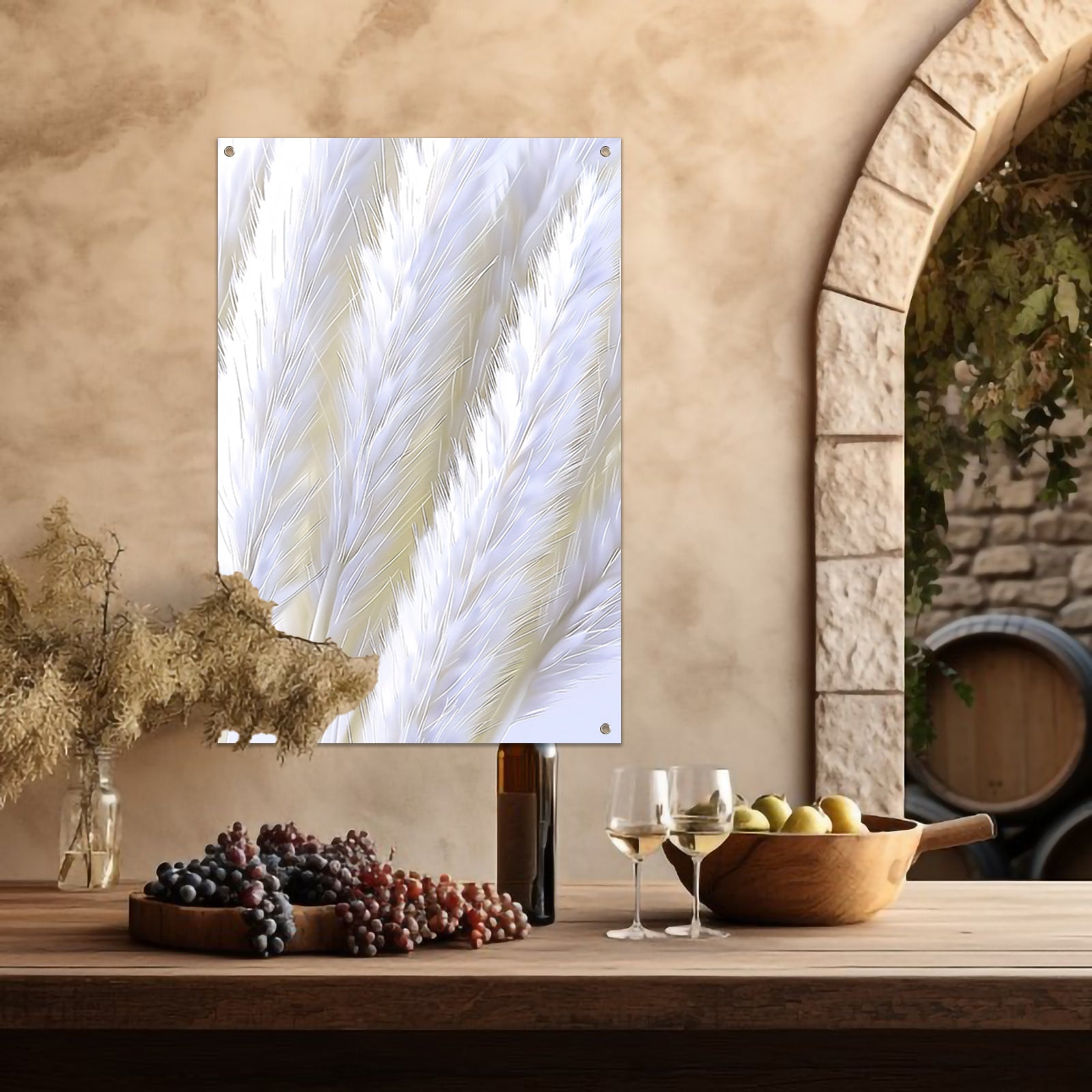 Digitale print van witte pluimen tuinposter