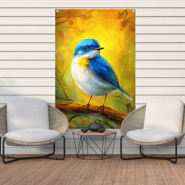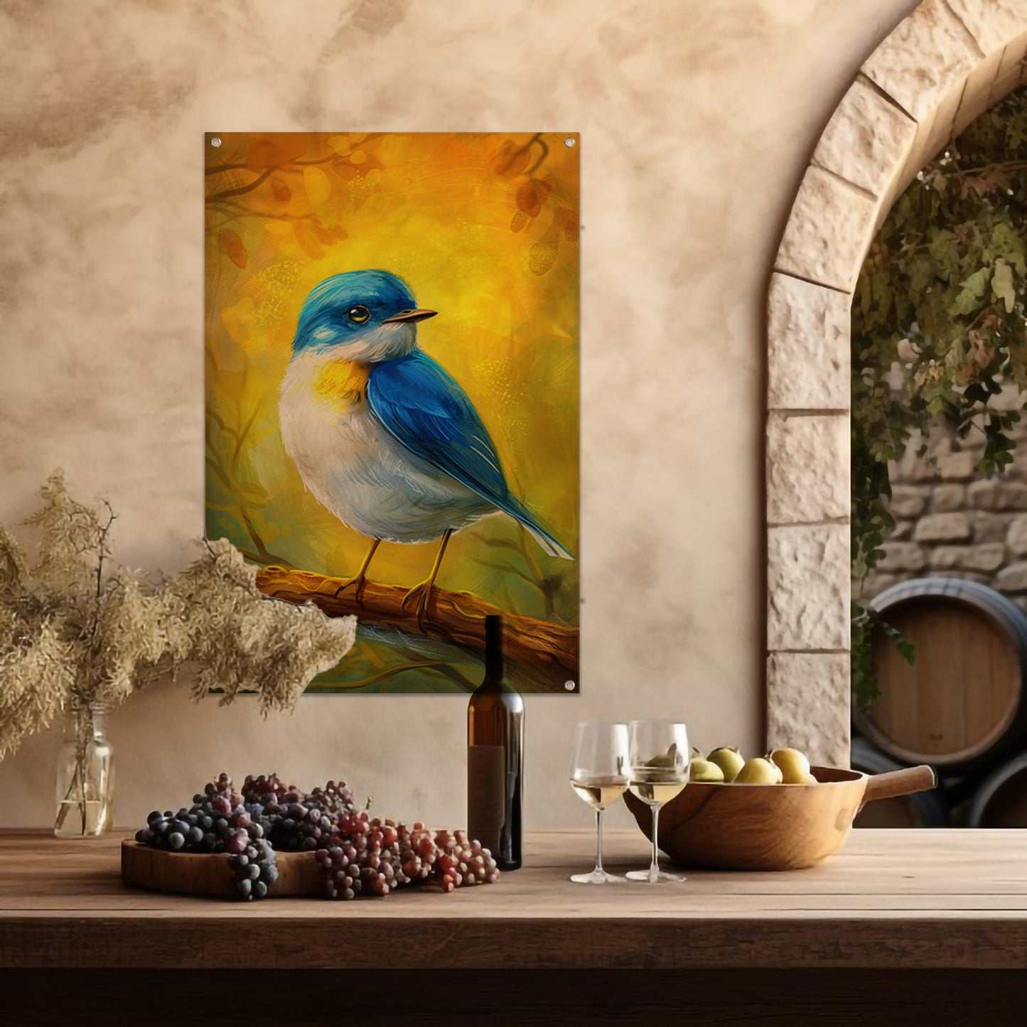Digitale schilderij van kleurrijke vogel op tak tuinposter