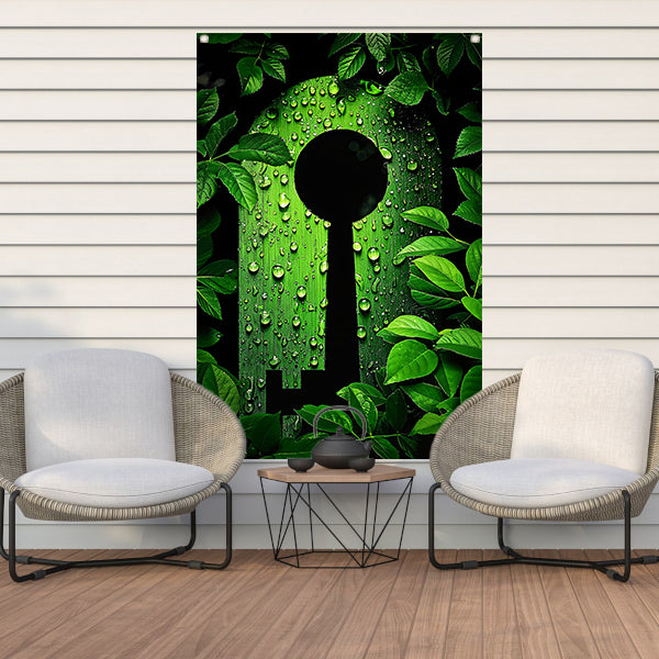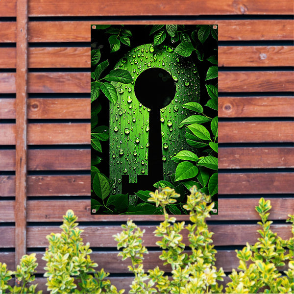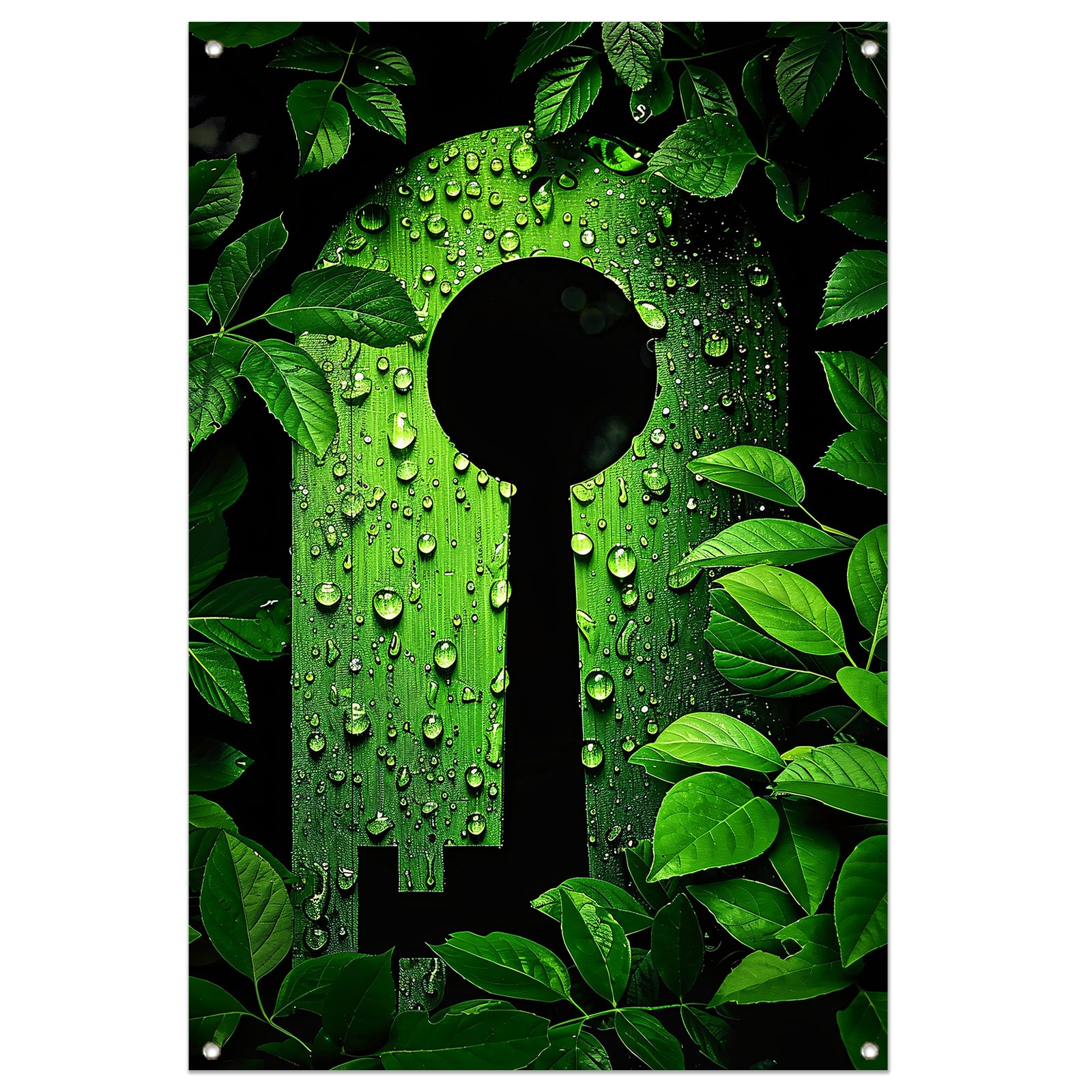Digitale Sleutel omringt door Groene Planten tuinposter