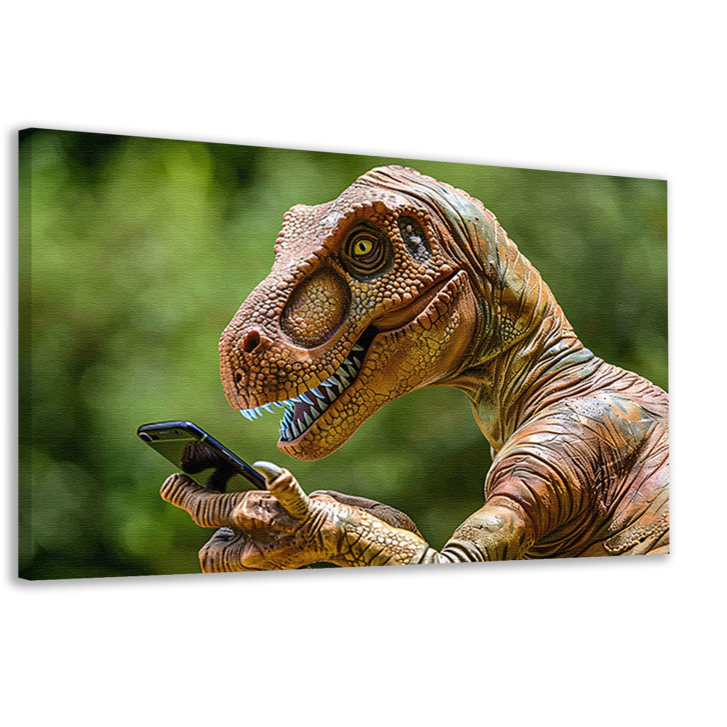 Dinosaur met smartphone in futuristische wereld canvas