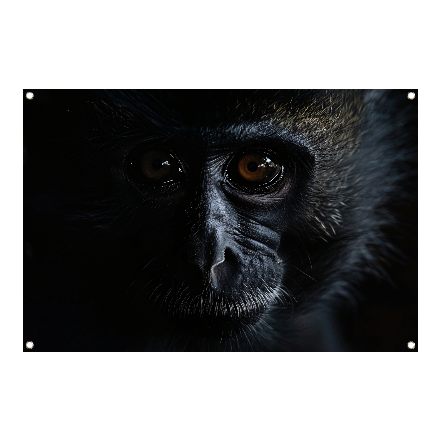 Doordringende Blik van een Aap in het Donker tuinposter