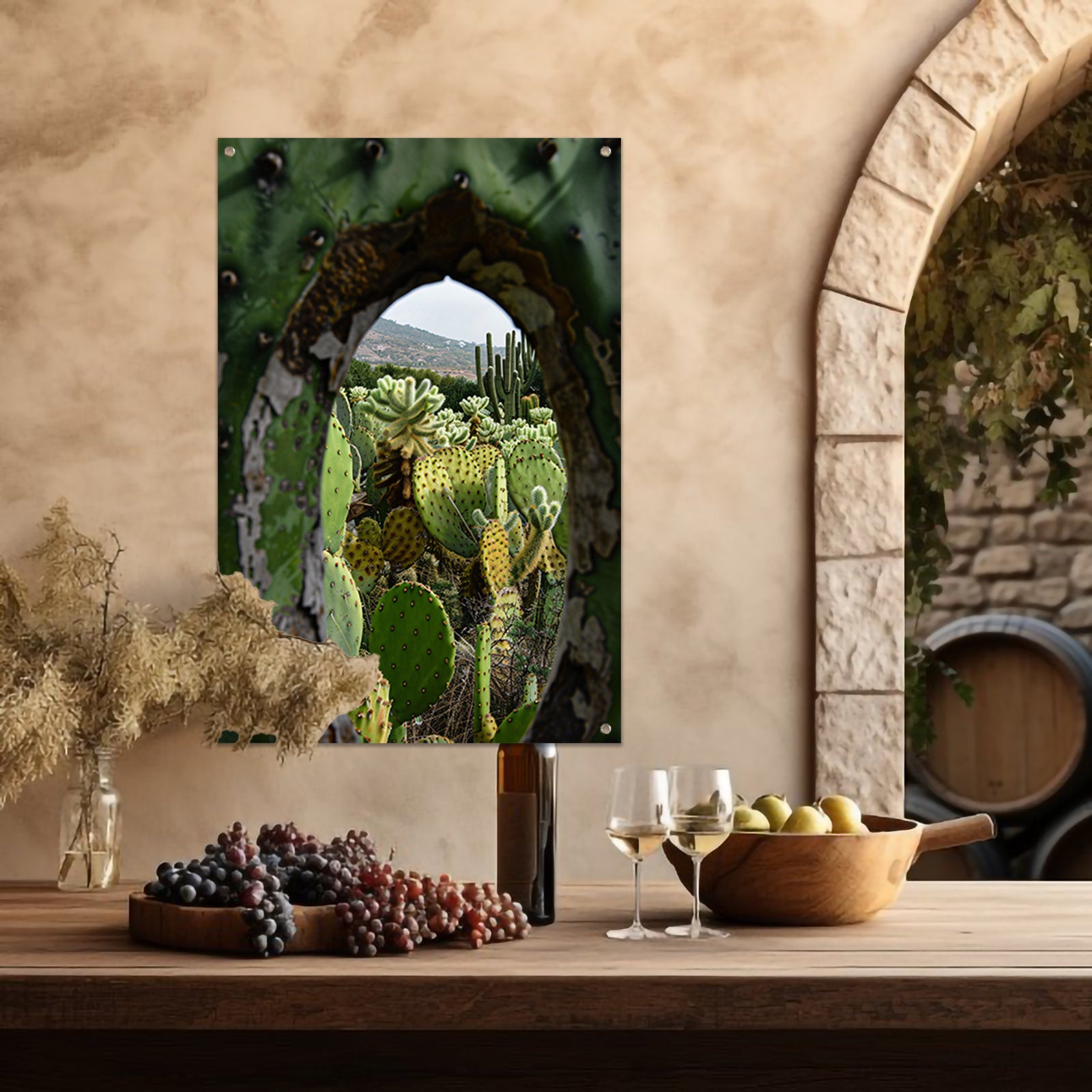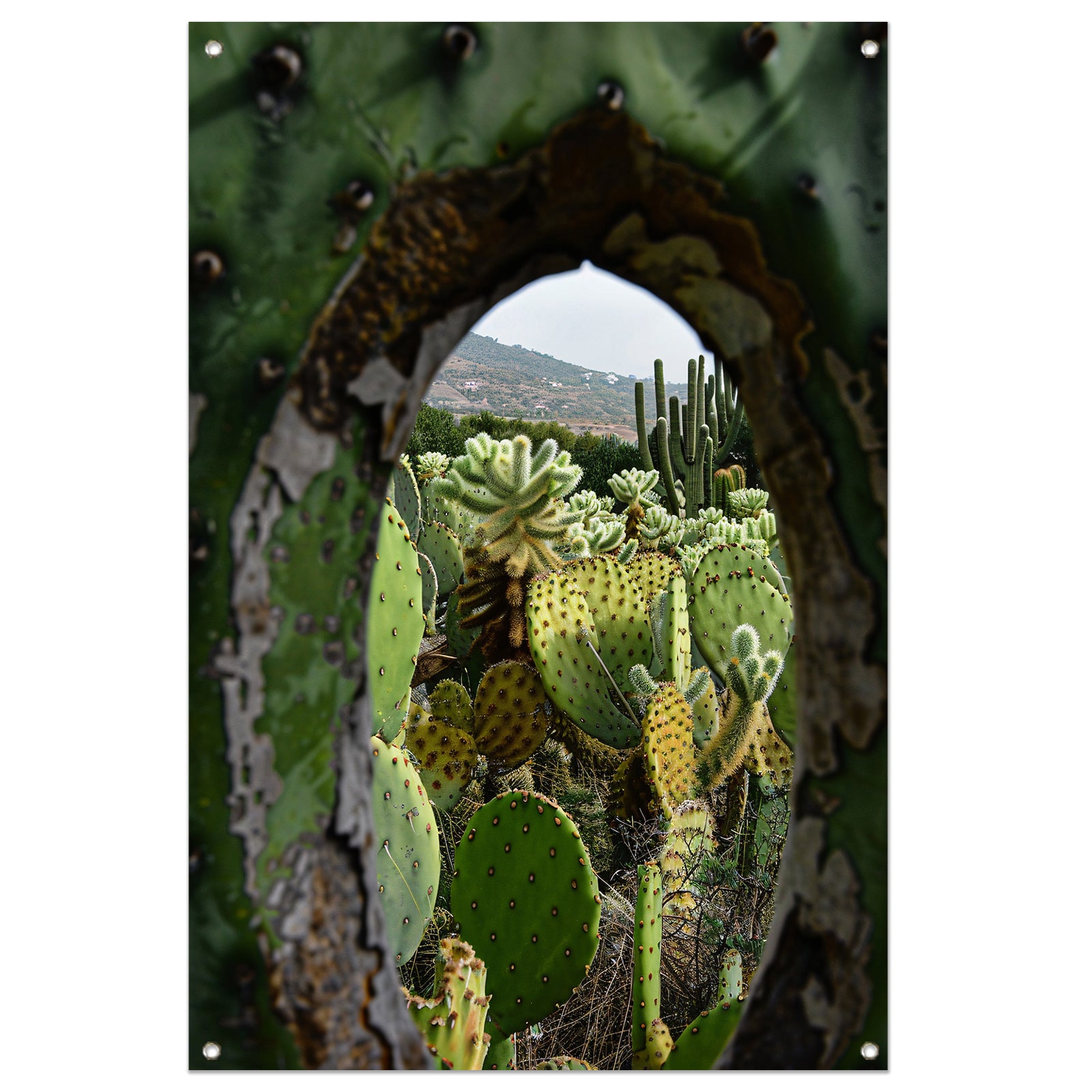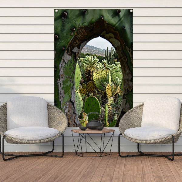 Doorkijkje naar een cactusparadijs tuinposter