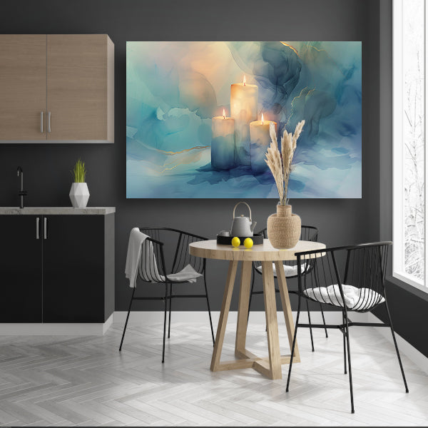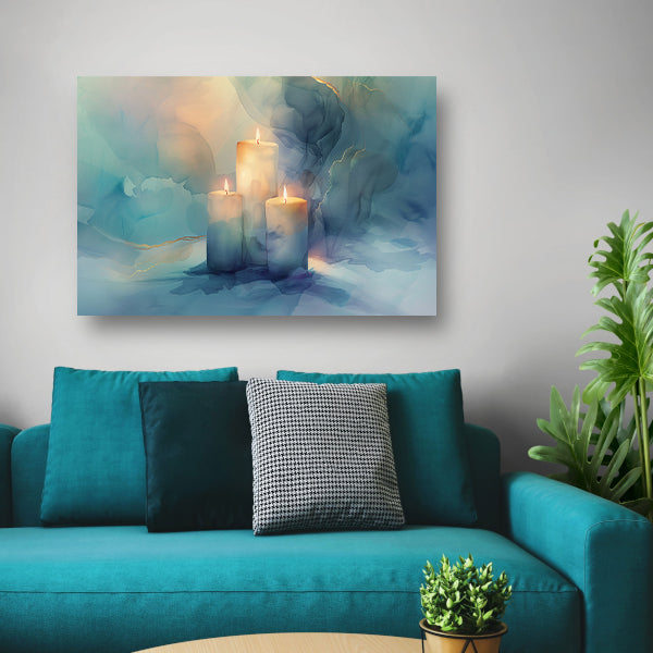 Drie brandende kaarsen in abstract ontwerp acrylglas