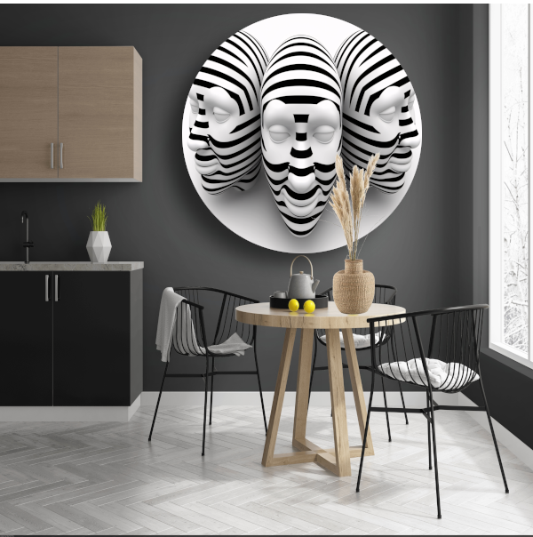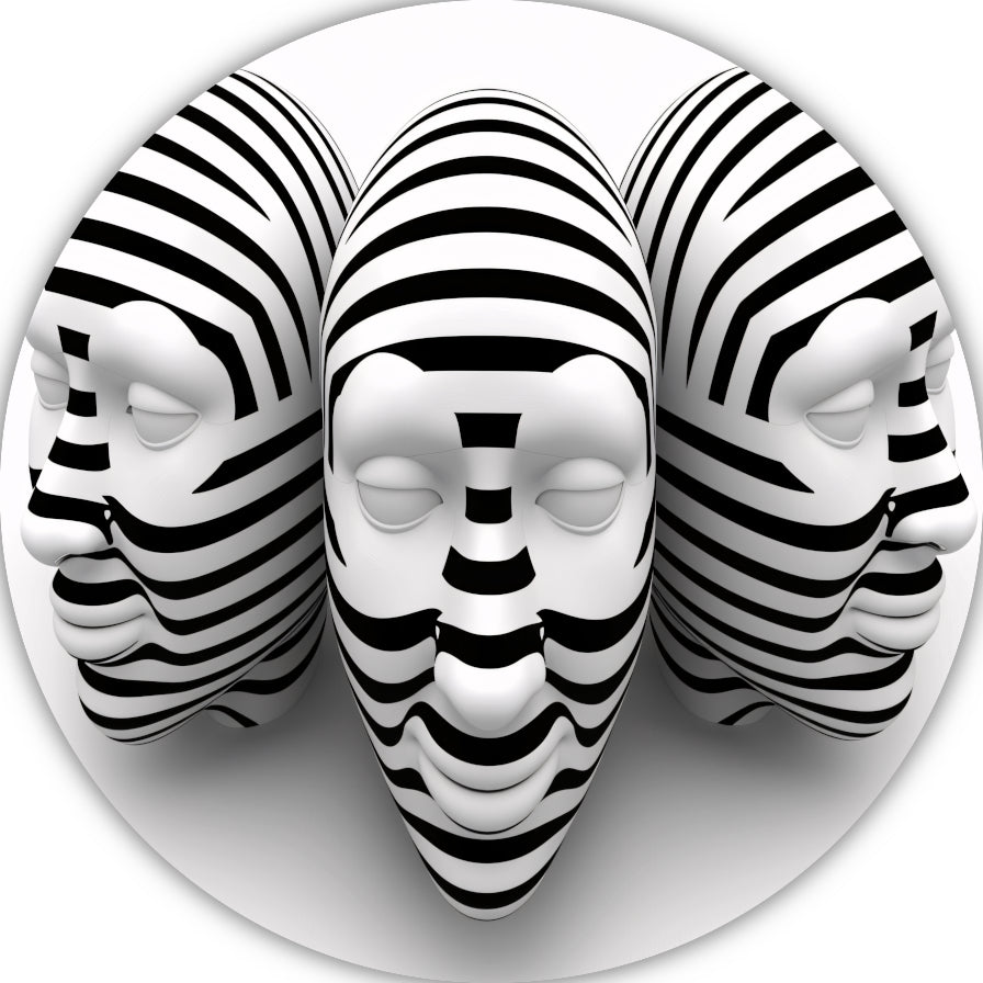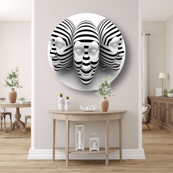 Drie Gestreepte Zwart Wit Maskers aluminium muurcirkel