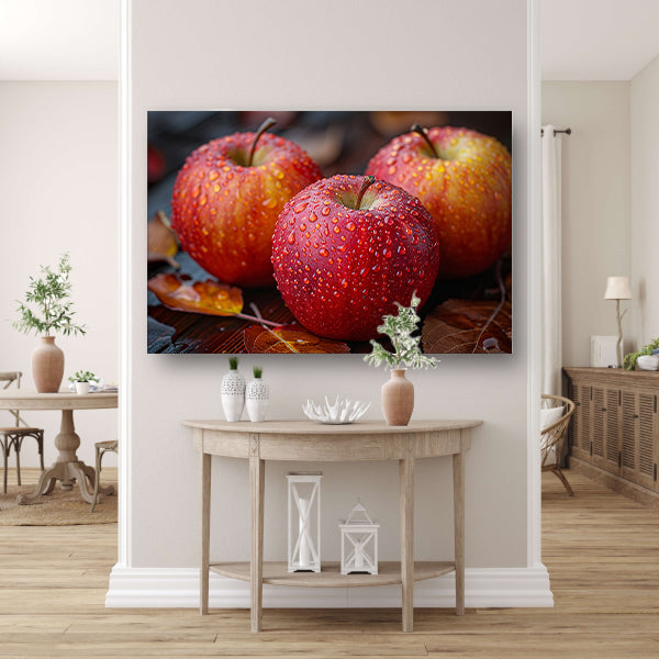 Drie Kleurrijke Appels met Dauwdruppels acrylglas