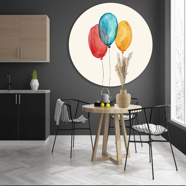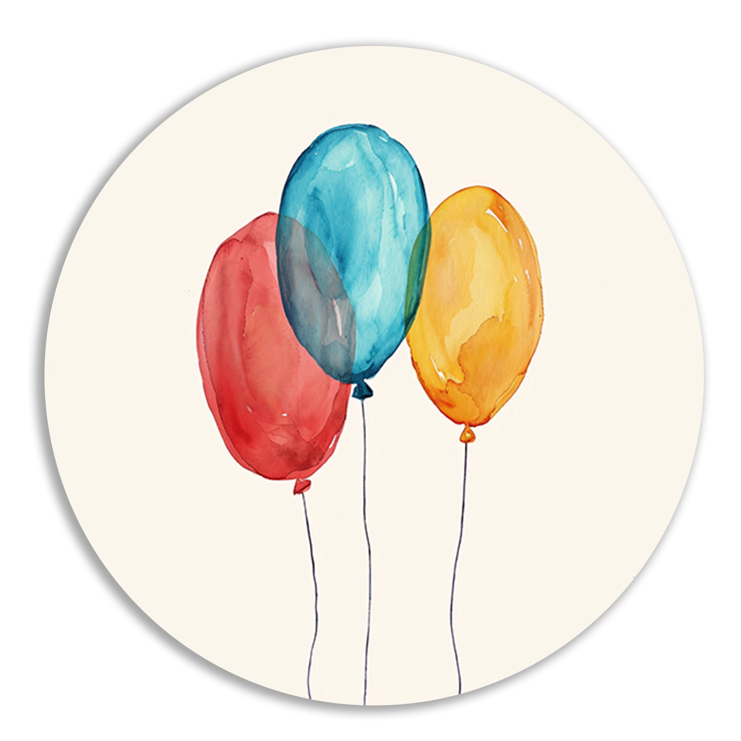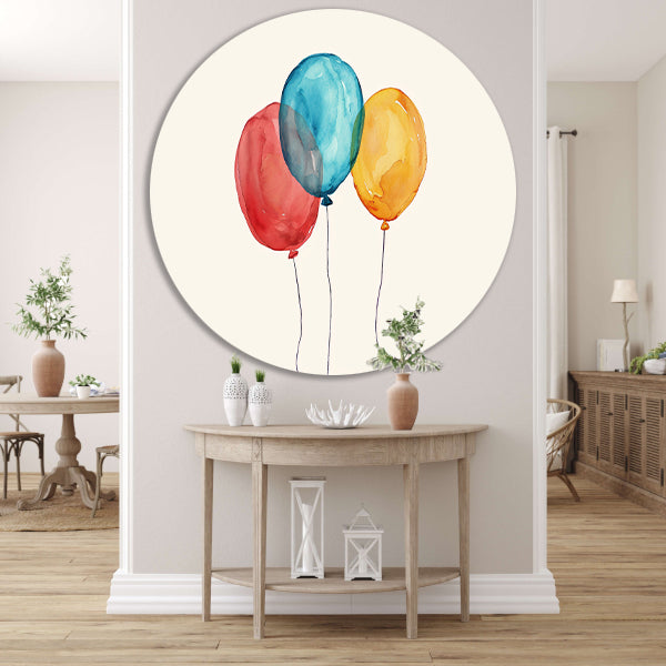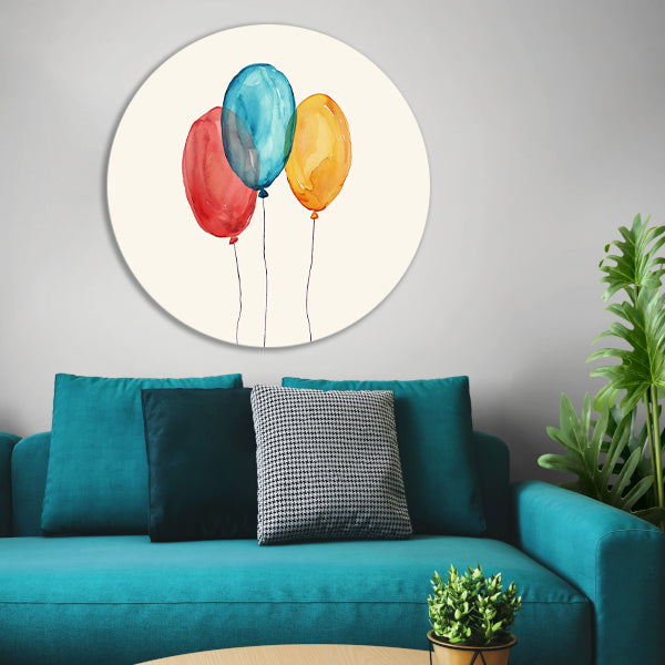 Drie kleurrijke ballonnen met dunne koorden aluminium muurcirkel