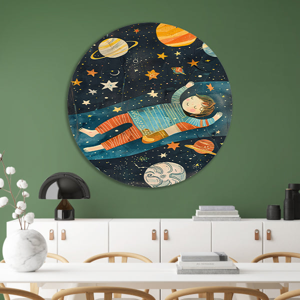Dromend Jongetje in een Kleurrijk Heelal forex muurcirkel