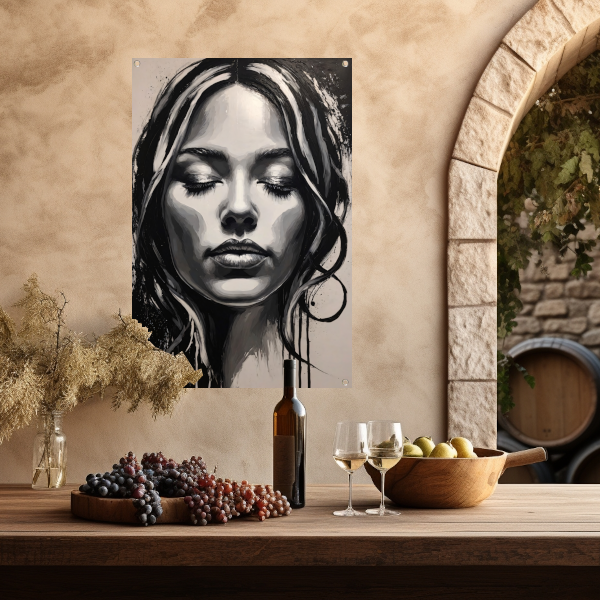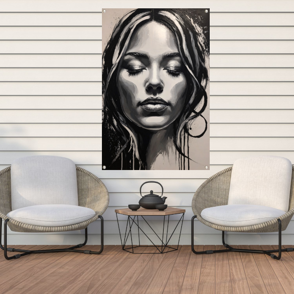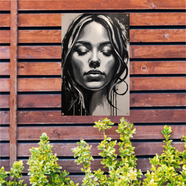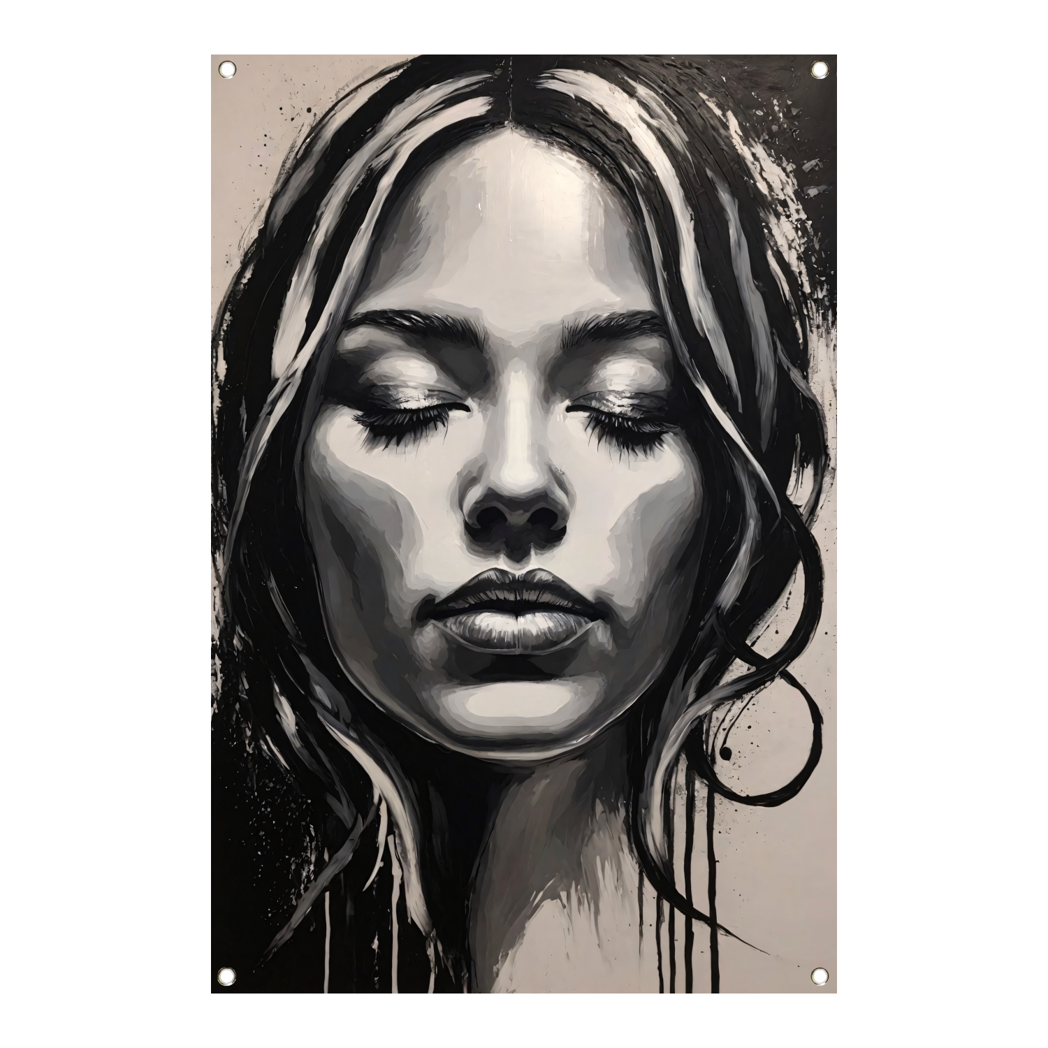Dromend Vrouwengezicht in Monochroom Contrast tuinposter