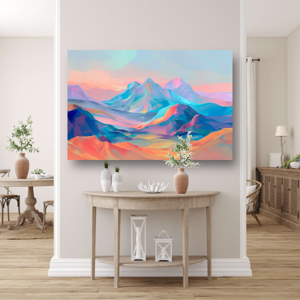 Droomachtige pastelkleurige abstracte berglandschap canvas met baklijst