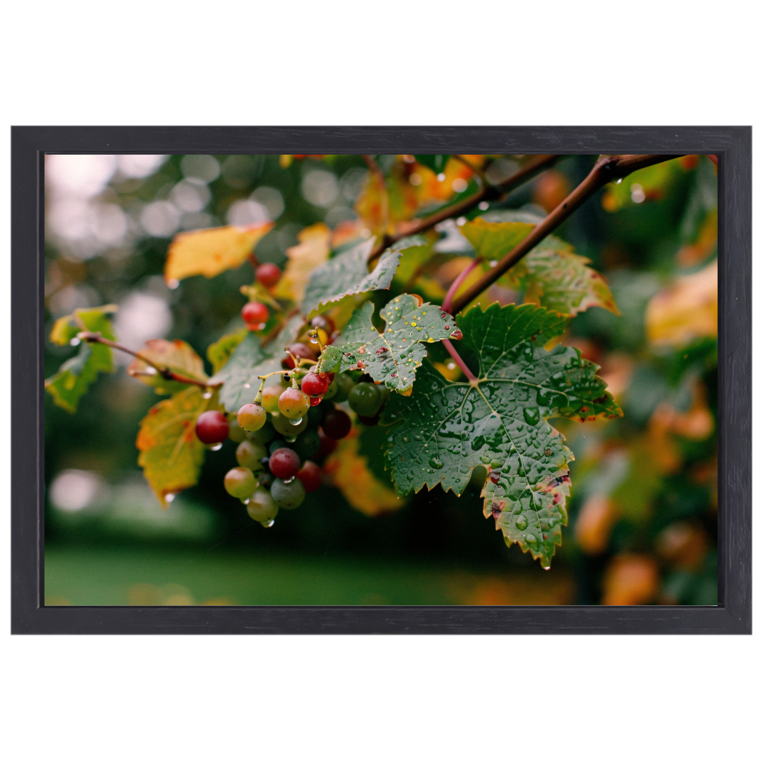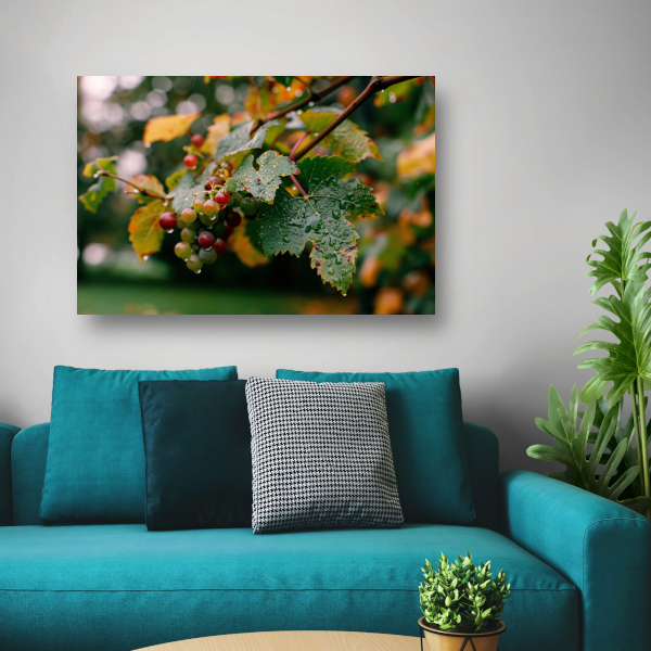 Druiventros met dauw in de herfstochtend canvas met baklijst