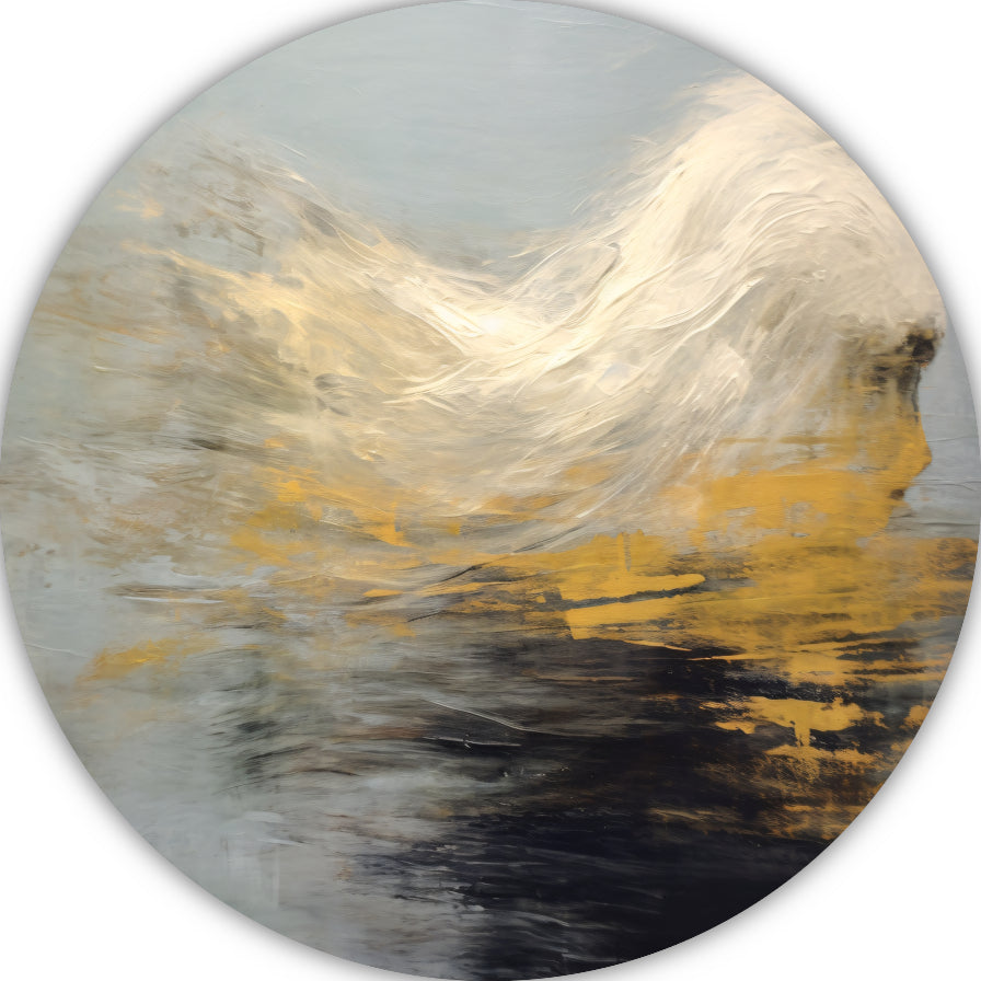 Dynamiek van Goud en Zwart in Abstractie aluminium muurcirkel