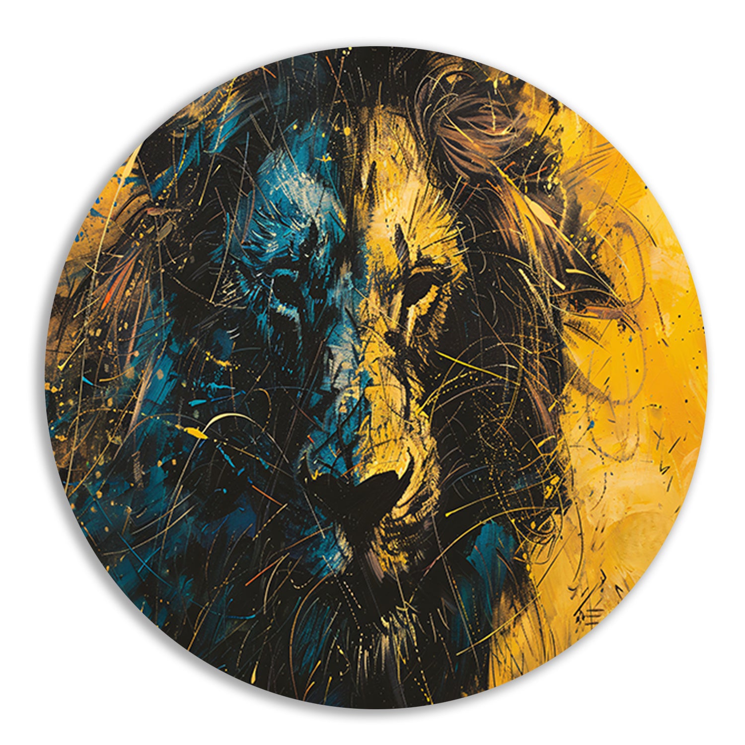 Dynamisch abstract schilderij van een leeuw aluminium muurcirkel