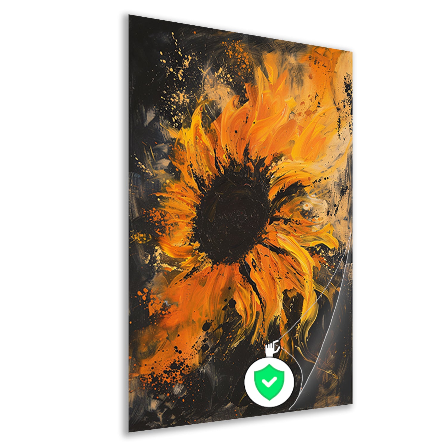 Dynamisch abstract zonnebloem schilderij in oranje poster