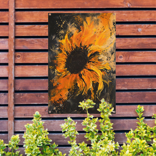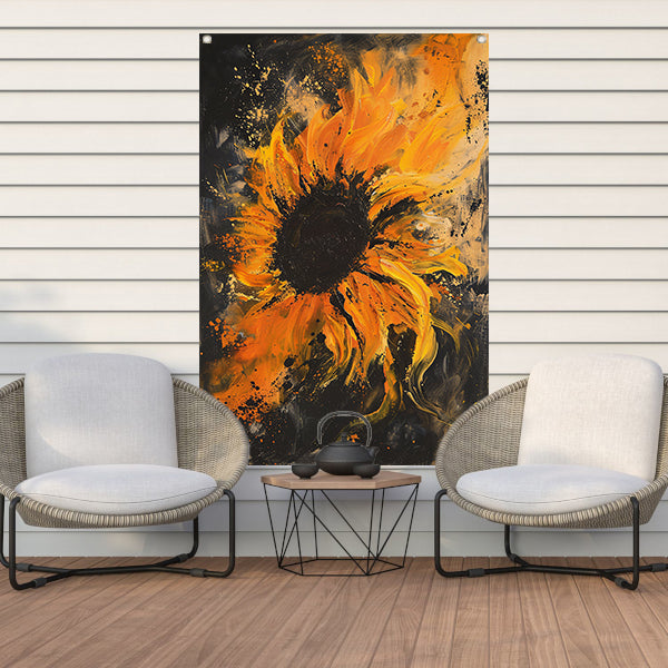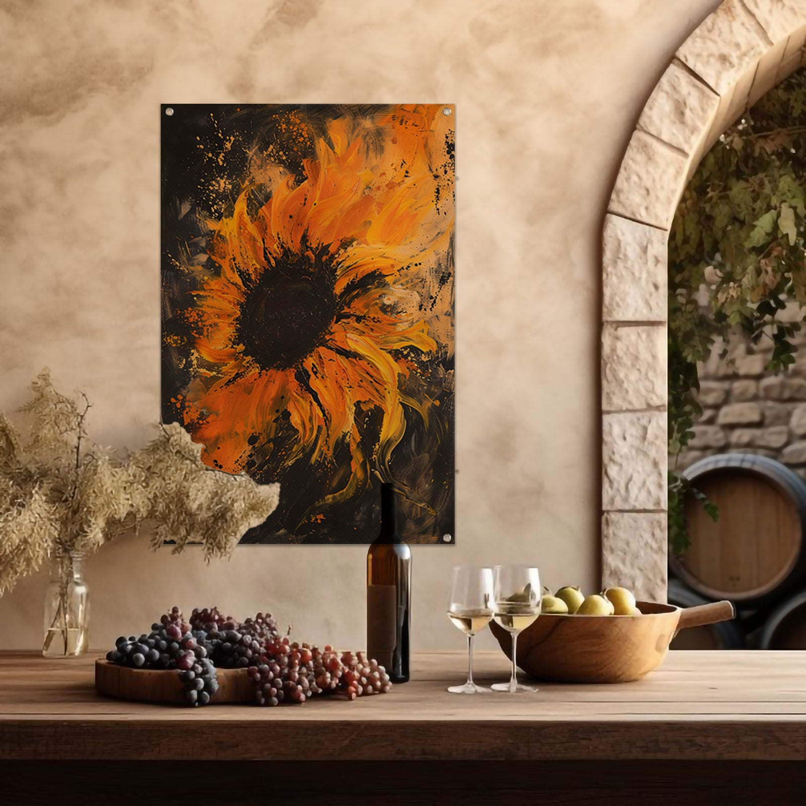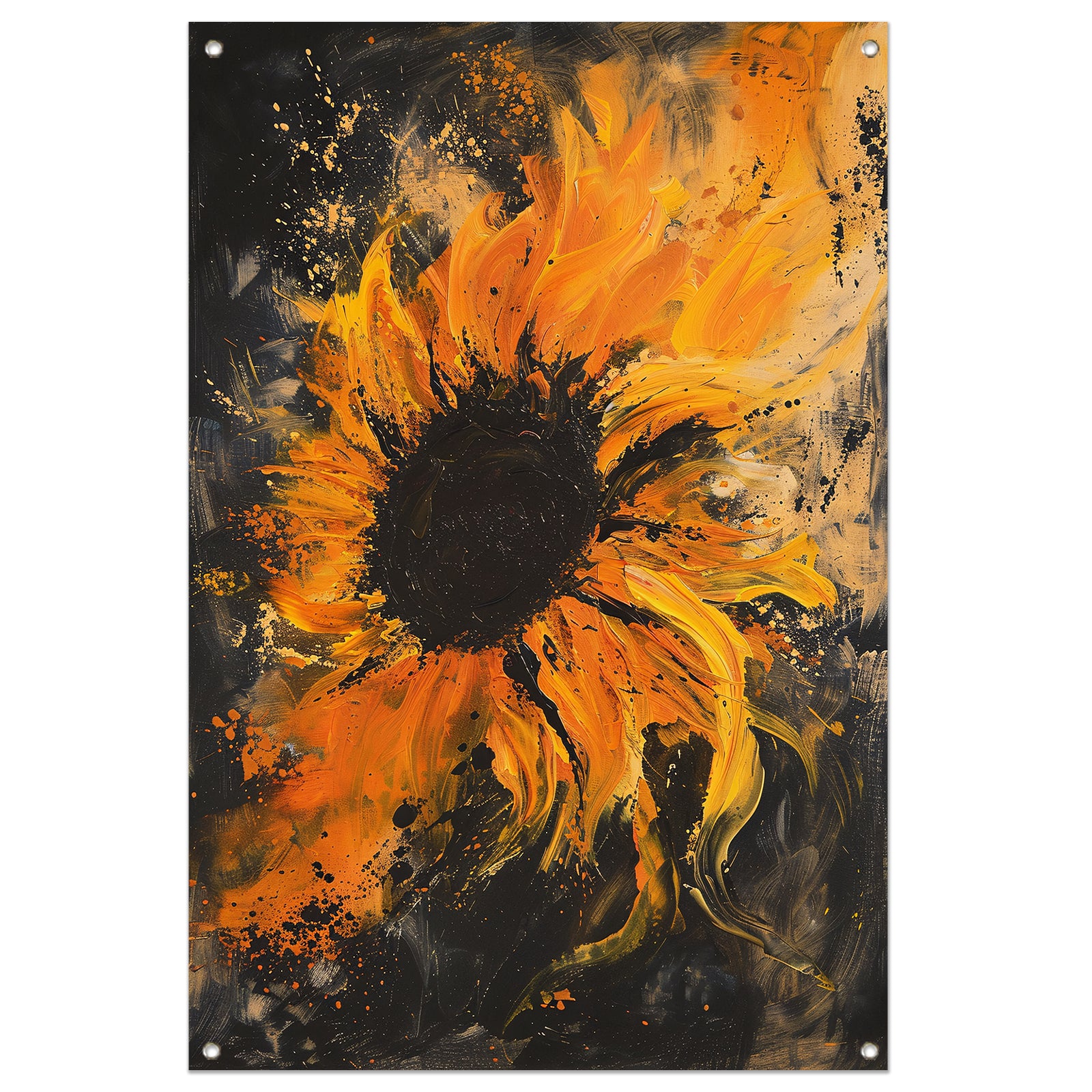 Dynamisch abstract zonnebloem schilderij in oranje tuinposter