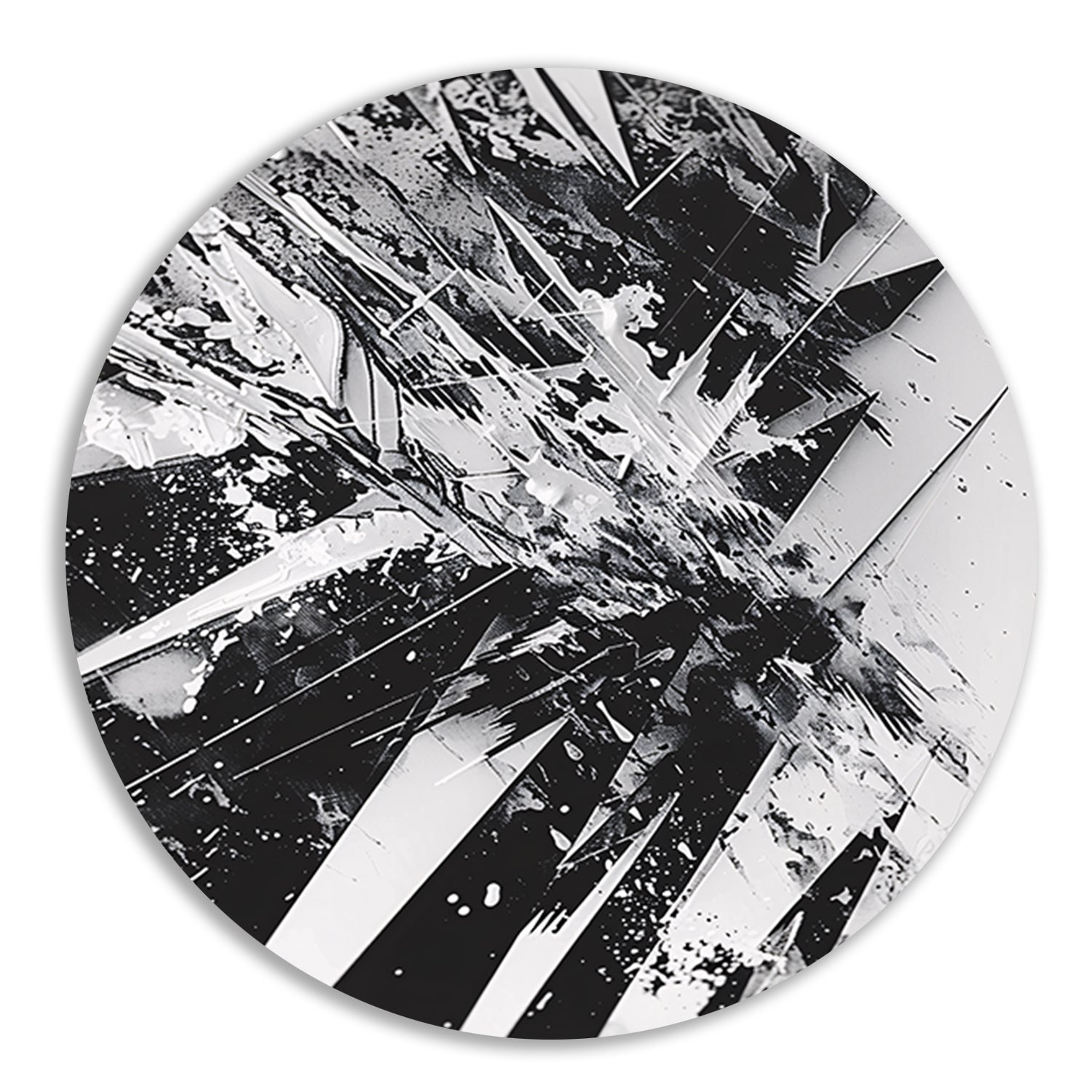 Breng een eigentijdse en stijlvolle touch aan je woning met dit dynamische abstracte zwart-wit ontwerp op forex muurcirkel.