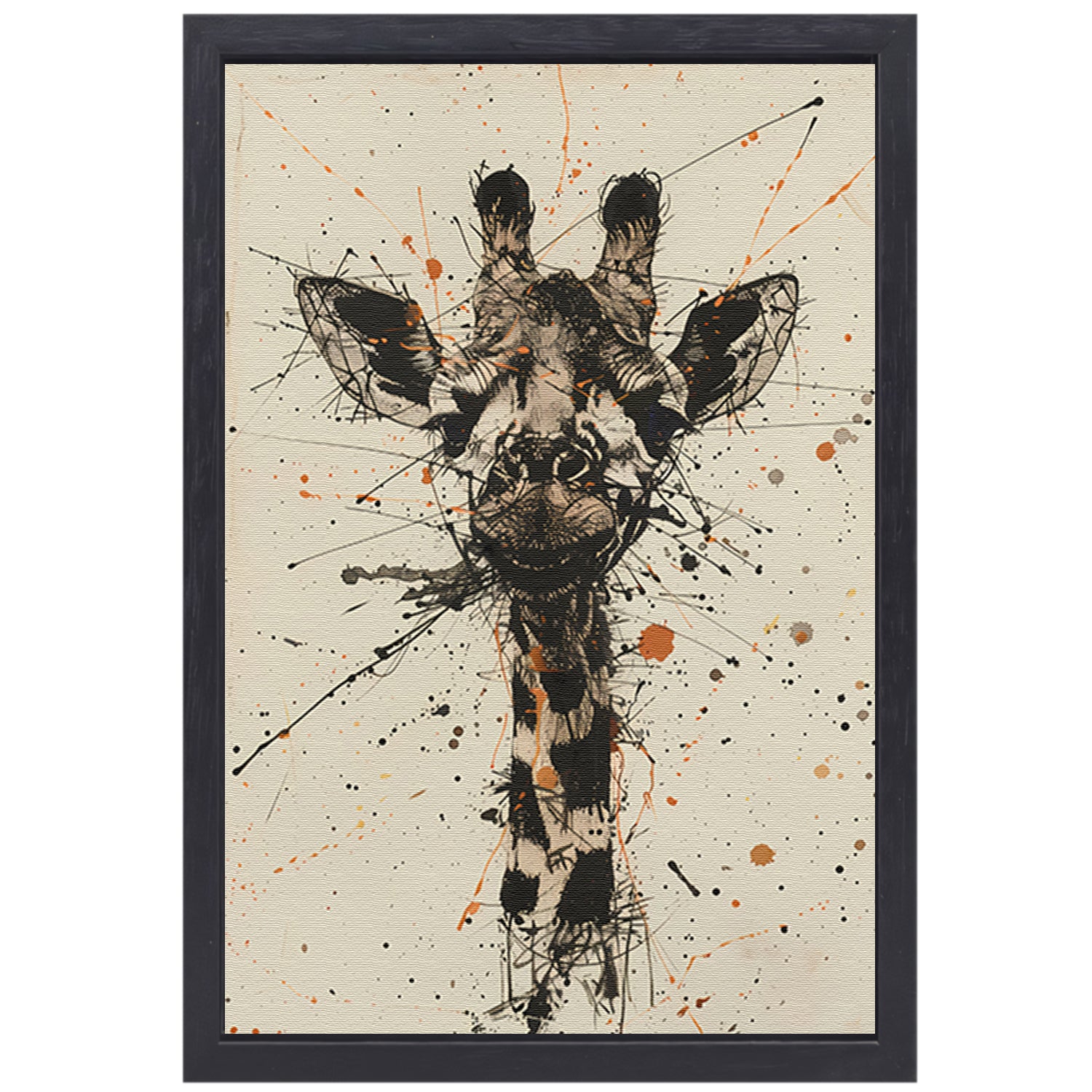 Dynamisch abstracte giraffe kunstwerk met spatten canvas met baklijst
