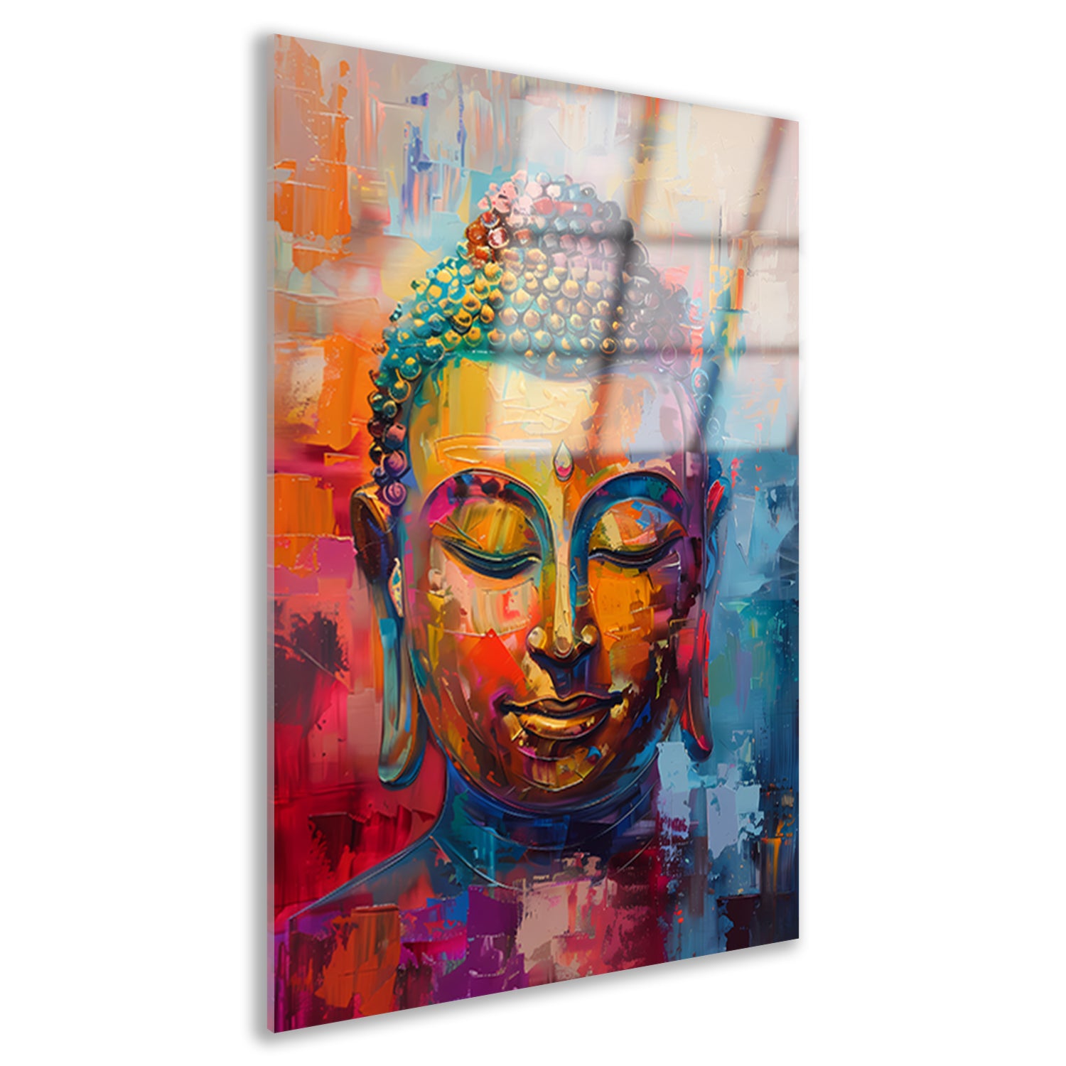Dynamisch en kleurrijk olieverfschilderij van Boeddha acrylglas