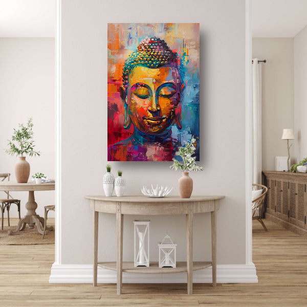 Dynamisch en kleurrijk olieverfschilderij van Boeddha canvas