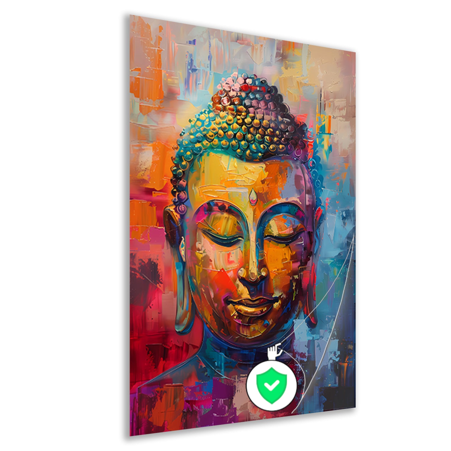Dynamisch en kleurrijk olieverfschilderij van Boeddha poster