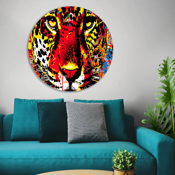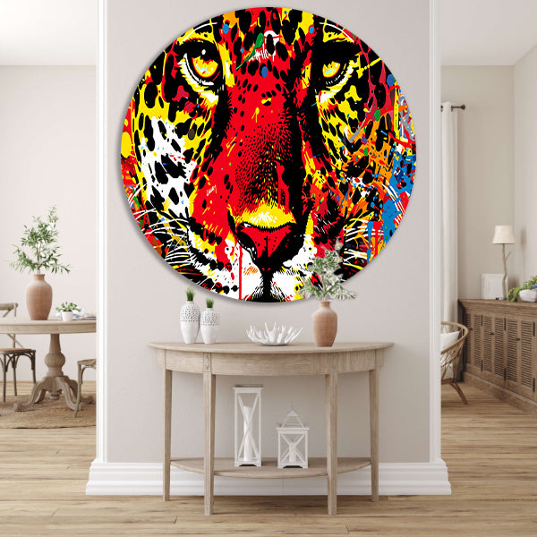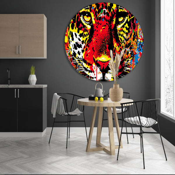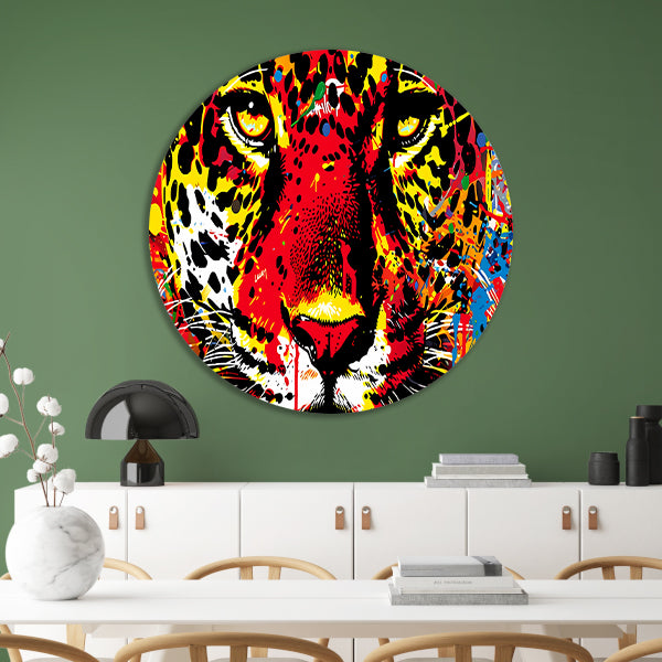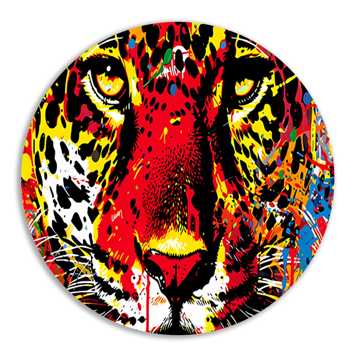 Dynamisch en kleurrijk portret van een jaguar aluminium muurcirkel