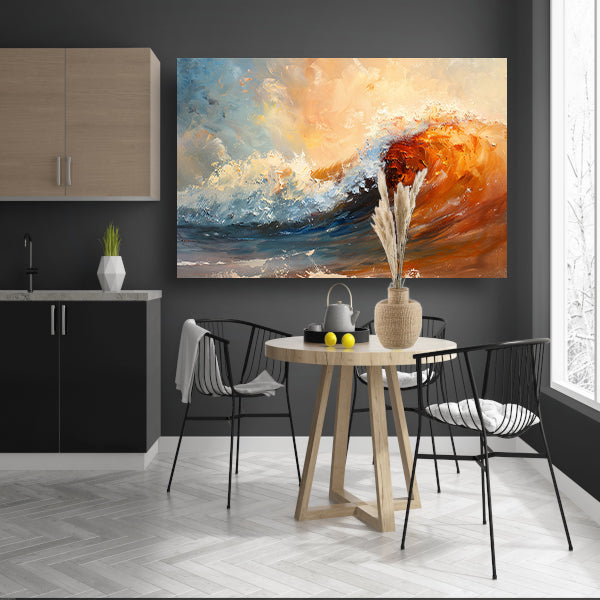 Dynamisch impressionistisch schilderij van een golf canvas met baklijst