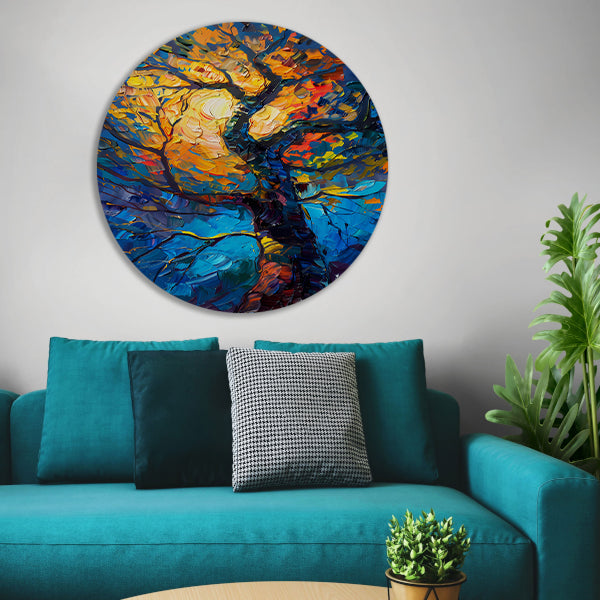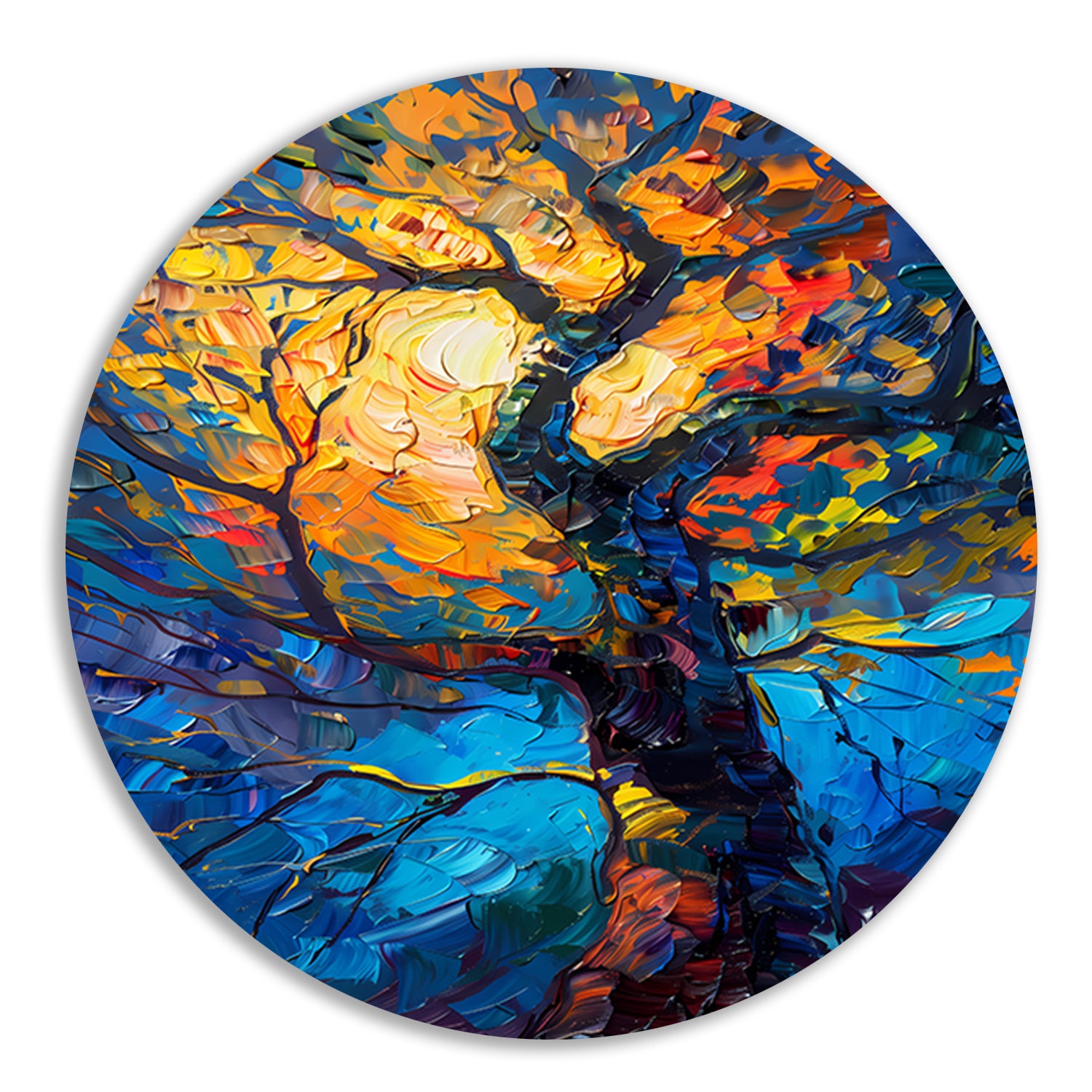 Dynamisch kleurrijk olieverfschilderij van een boom forex muurcirkel