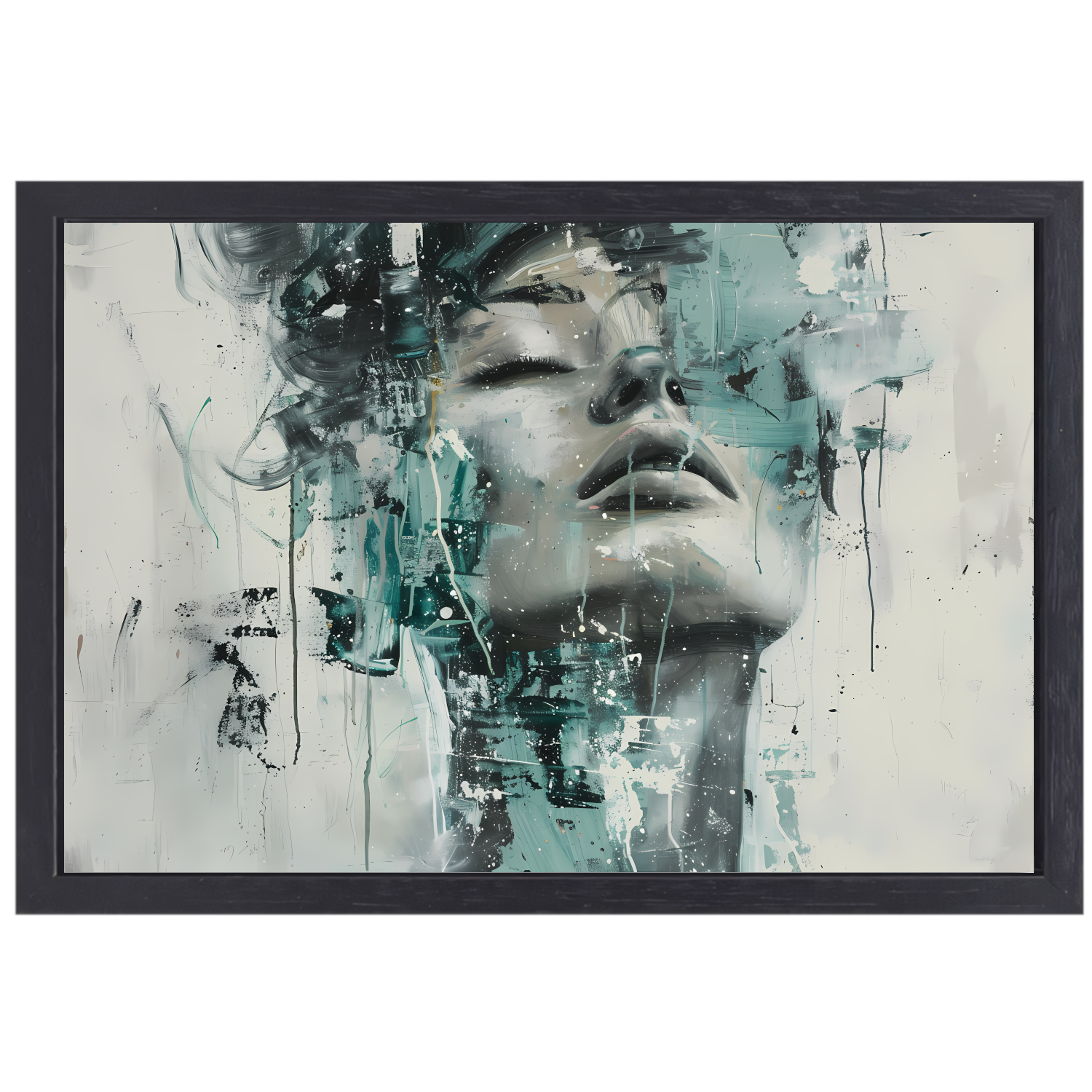 Dynamisch Portret van Vrouw in Turquoise canvas met baklijst