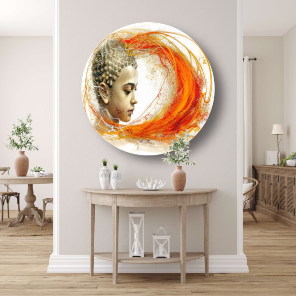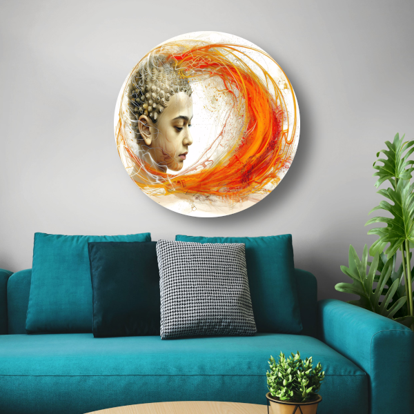 Dynamisch Profiel in Oranje en Geel aluminium muurcirkel