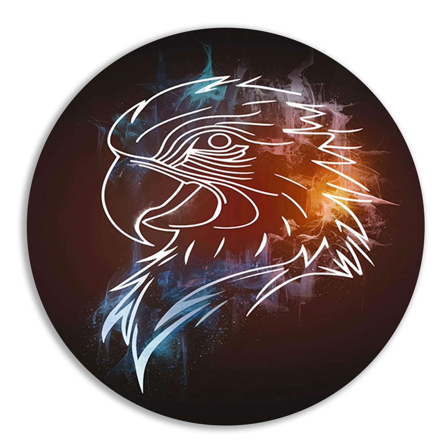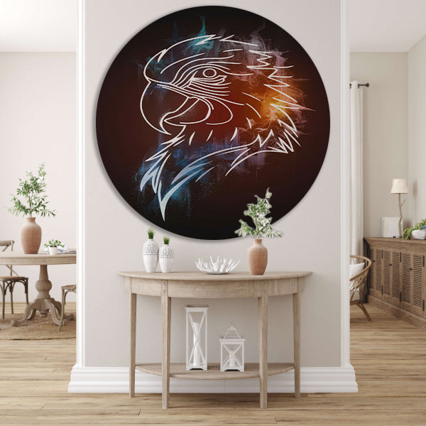 Dynamische Abstracte Adelaar in Blauw en Oranje aluminium muurcirkel