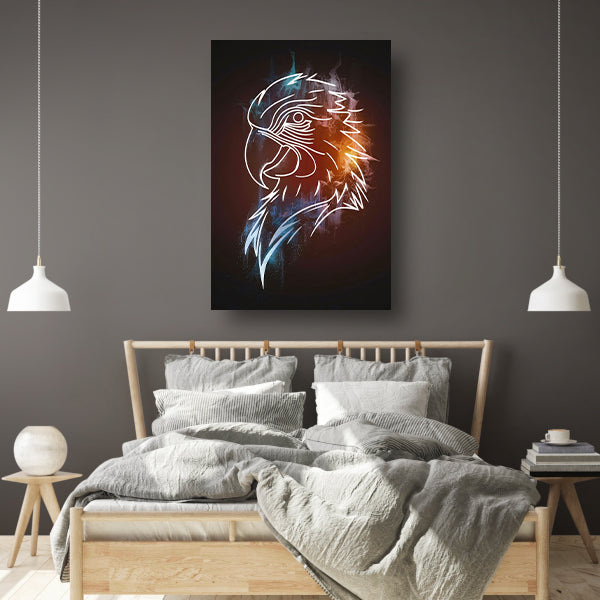 Dynamische Abstracte Adelaar in Blauw en Oranje canvas met baklijst