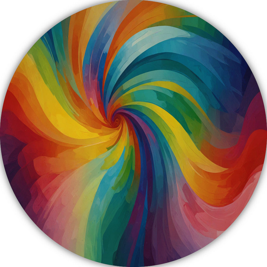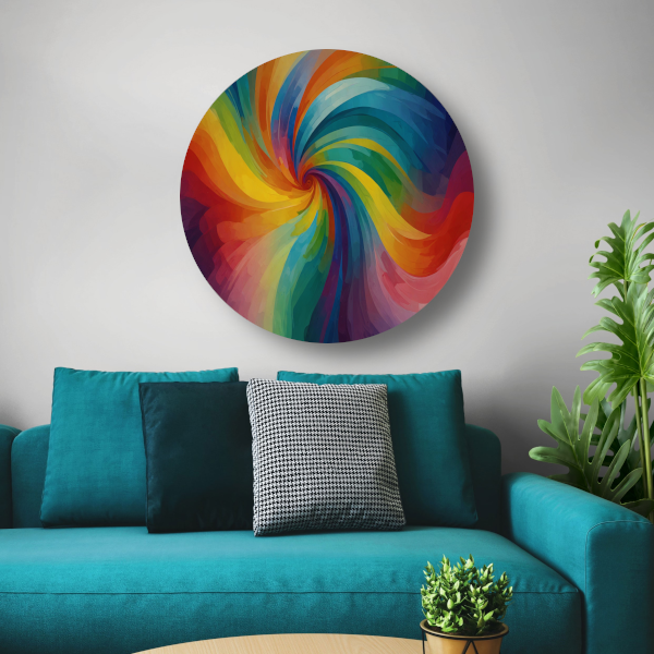 Voeg een vleugje kleur toe aan je interieur met deze prachtige dynamische abstracte kleurexplosie in werveling forex muurcirkel en breng je muren tot leven.
