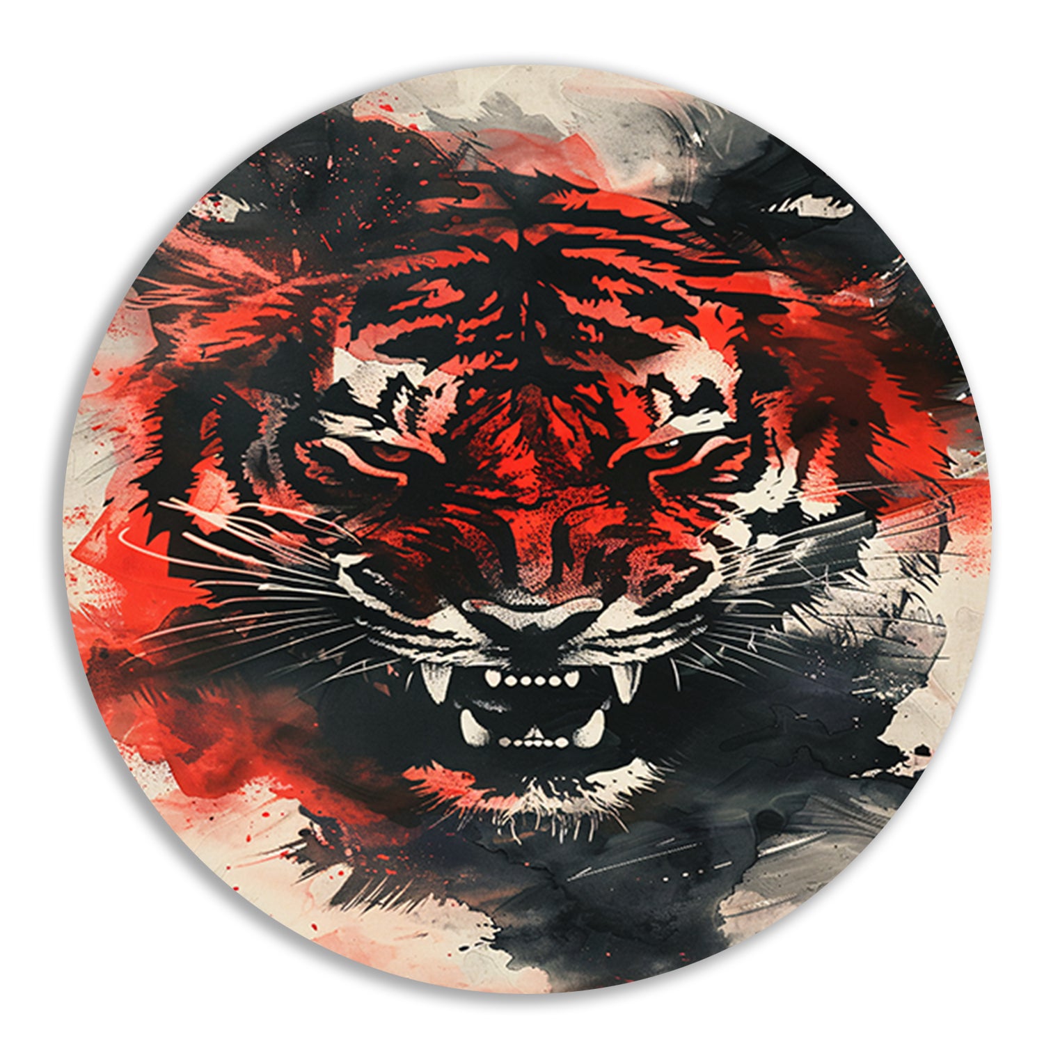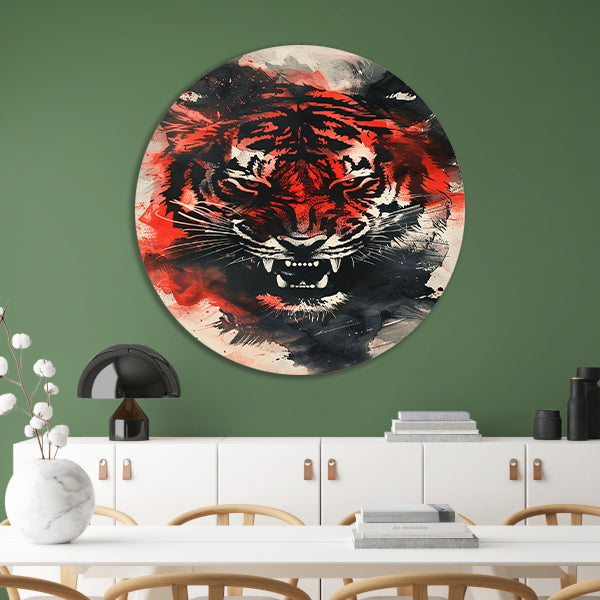 Dynamische abstracte tijger schilderij met felle kleuren forex muurcirkel