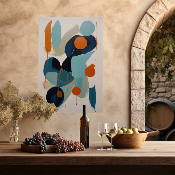 Dynamische Abstractie in Blauw en Oranje tuinposter