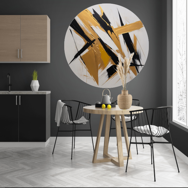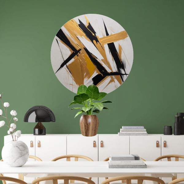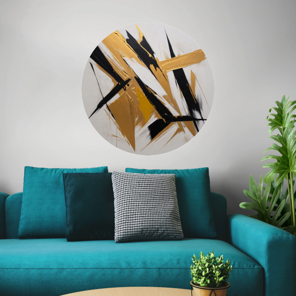 Dynamische Abstractie in Goud en Zwart aluminium muurcirkel