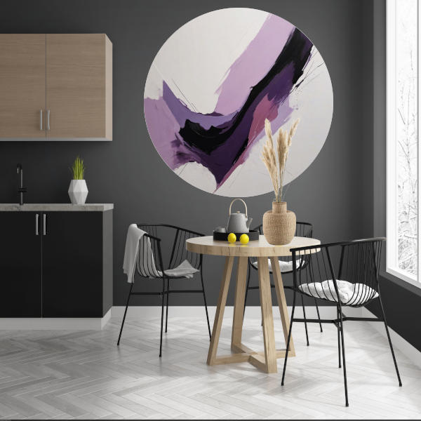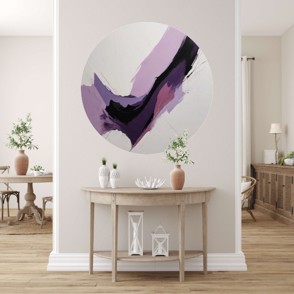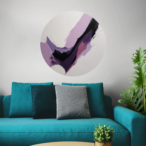Dynamische abstractie in paars en zwart aluminium muurcirkel