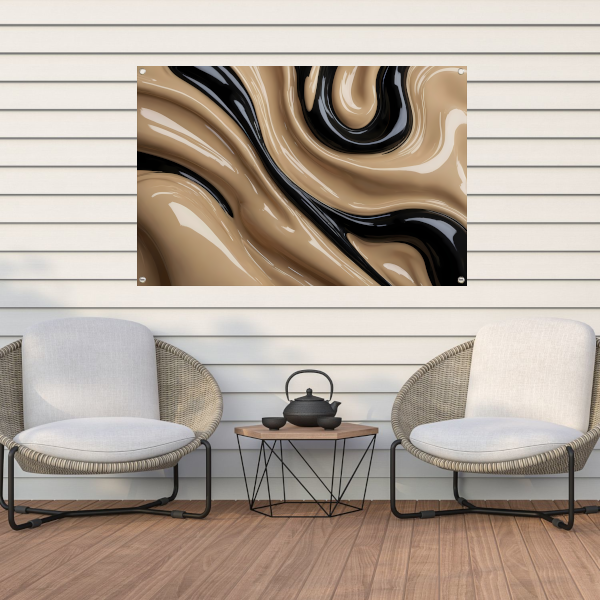 Haal nu deze prachtige Dynamische Abstractie in Zwart en Beige tuinposter in huis en geef jouw tuin een unieke en moderne uitstraling!