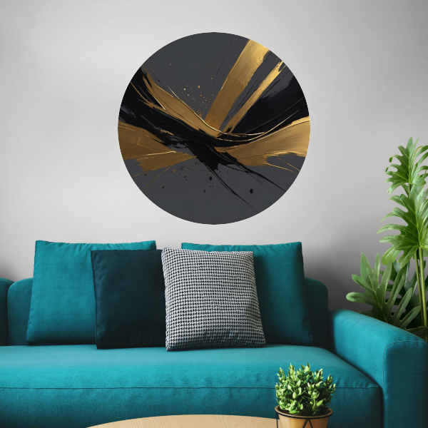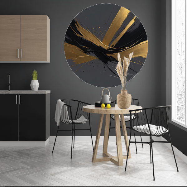 Voeg een vleugje flair toe aan je interieur met deze prachtige muurcirkel en geniet van de elegante uitstraling die het brengt. Upgrade je interieur met deze unieke en stijlvolle muurdecoratie en laat je ruimte stralen met de Dynamische Golven van Goud op Zwart forex muurcirkel.
