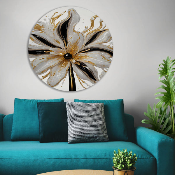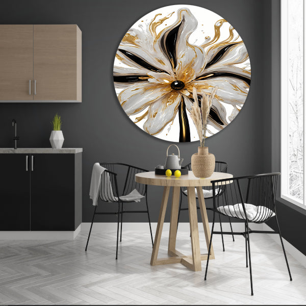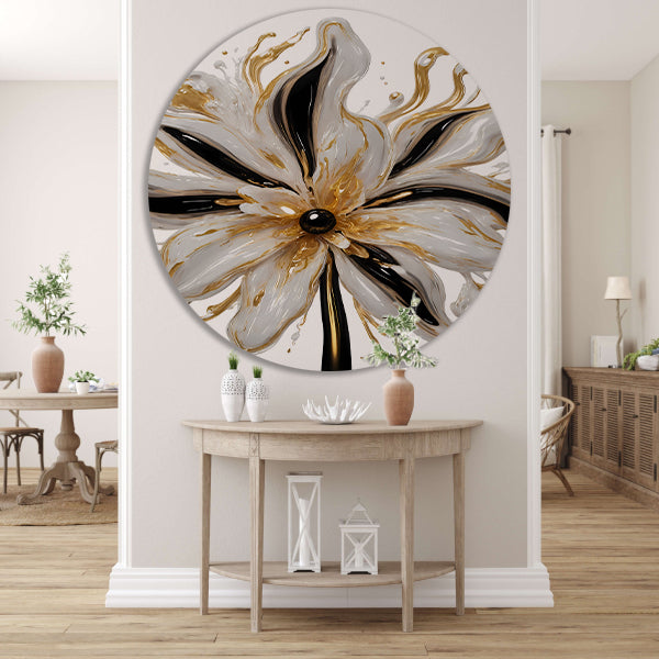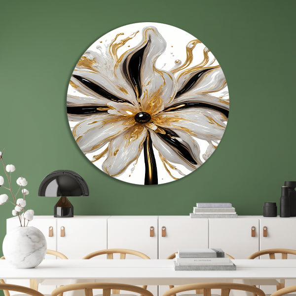 Dynamische Gouden Bloem op Abstracte Achtergrond aluminium muurcirkel