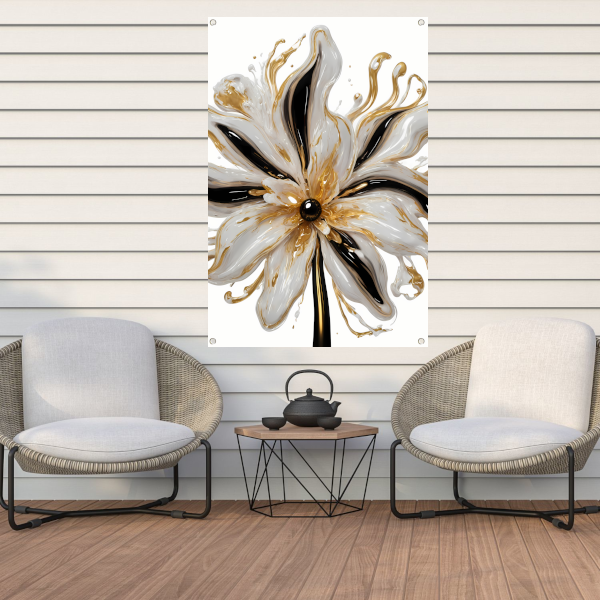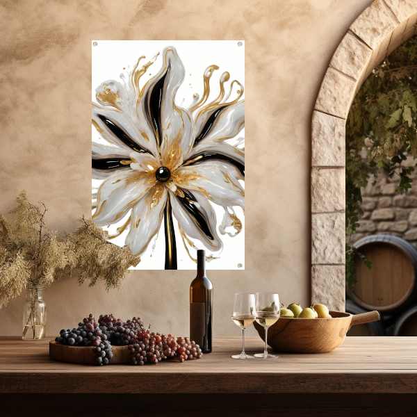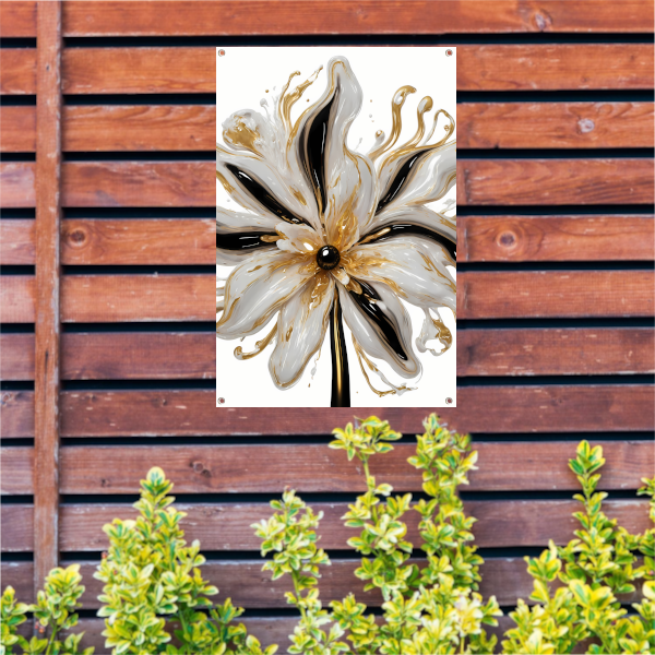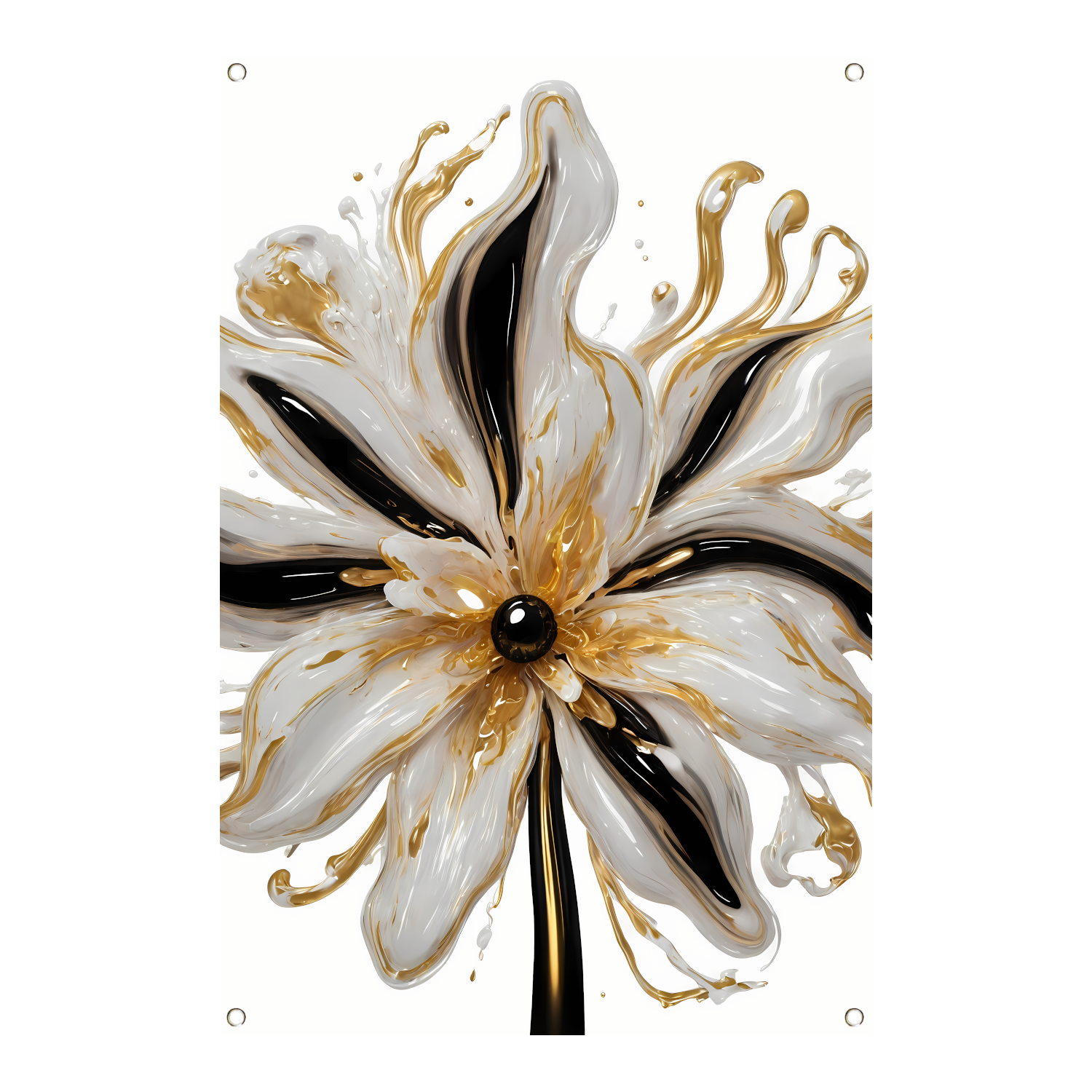 Dynamische Gouden Bloem op Abstracte Achtergrond tuinposter